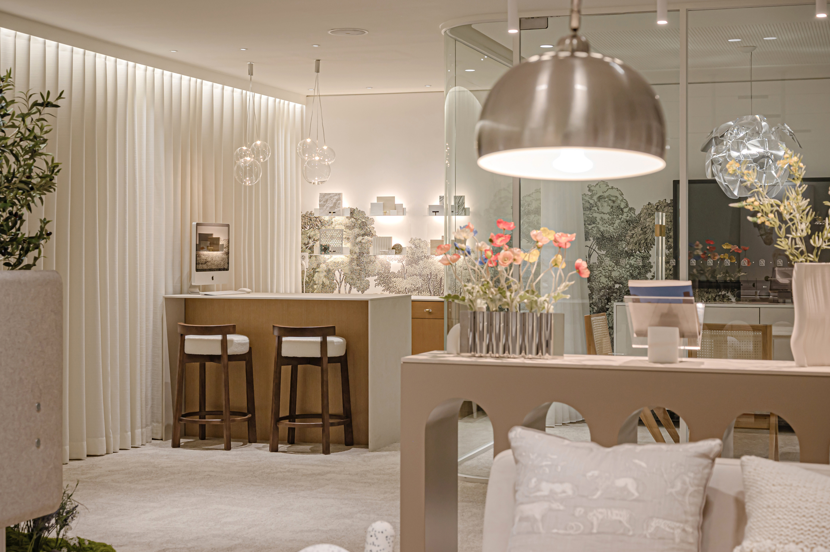 브랜드의 아이덴티티 또한 사무실 전반에 녹여냈다. 입구의 유리문 프레임에 회사의 로고를 새겨 브랜드의 정체성을 강조하며, 방문객들에게 디자이너의 창의적인 세계를 엿볼 수 있도록 한다. ‘Timeless design, timeless space’를 상징하는 로고의 아치를 디스플레이 가구 디자인에 접목시켰으며, 로고 색상을 연상시키는 베이지 악센트를 가구, 카펫, 타일, 책상 파티션에 반영시킴으로써 사무실 전반에 걸쳐 브랜드 경험을 조성했다. ‘디자이너의 아뜰리에’는 창의성이 꽃 피는 공간이자, 디자인에 대한 열정이 살아 숨 쉬는 곳이다.