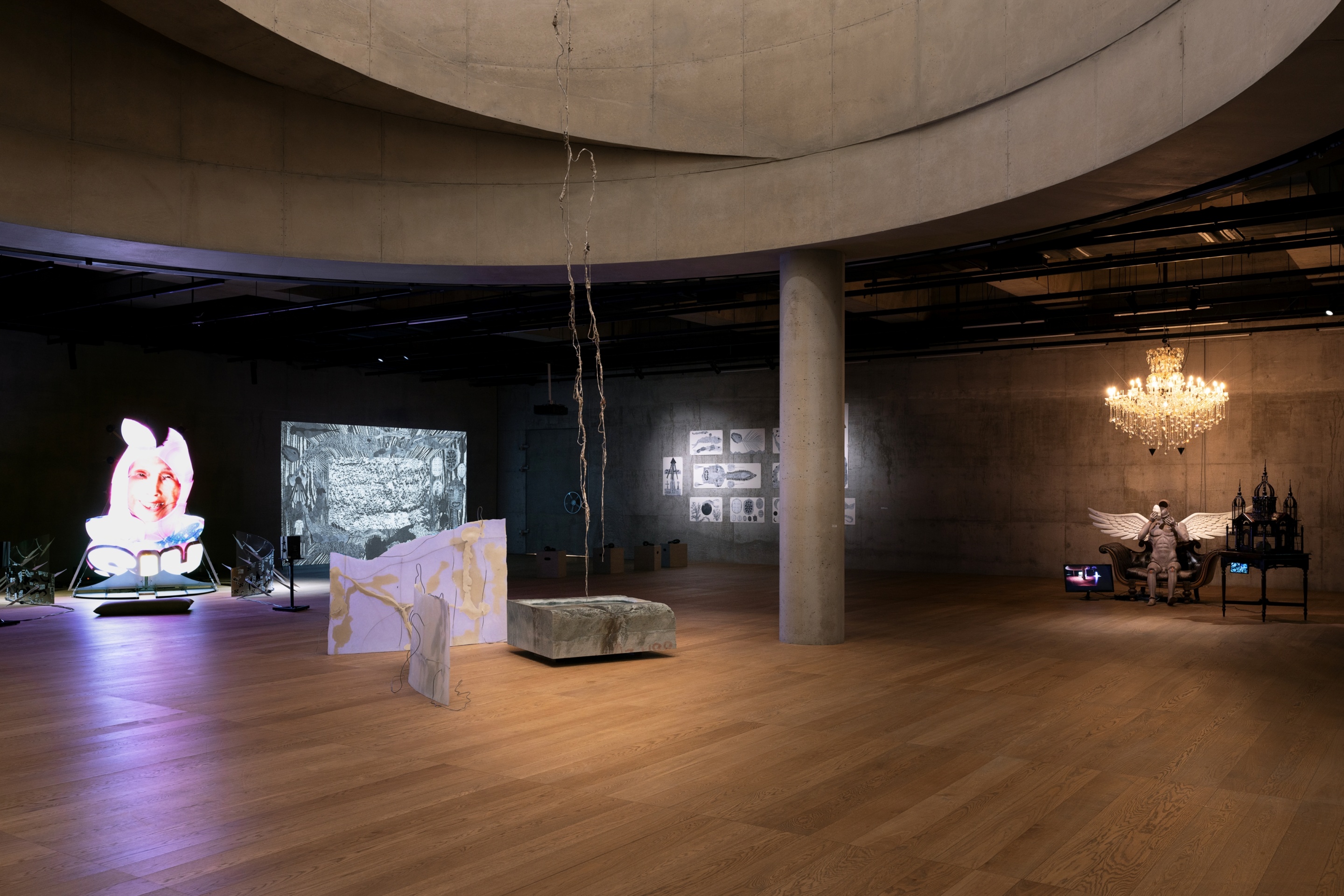 지하 2층 전시장에서도 작품을 만날 수 있다. 구나, 박종영, 얄루, 이승애, 안유리, 손수민 작가의 설치 및 영상 작업이 주를 이룬다. 기존 언어 인식 체계로는 구현이 어려운 이해의 공백을 페인팅과 입체를 빌려 메우는 구나 작가는 <상아뼈그레이보철정물화와 상아빛브라운블랙초상화, 그리고 블루블루스물빛실물>(2024)을 선보인다. 작가는 신체에 가해진 고통 후 다르게 받아들이는 삶과 죽음이라는 보편성을 고찰한다.