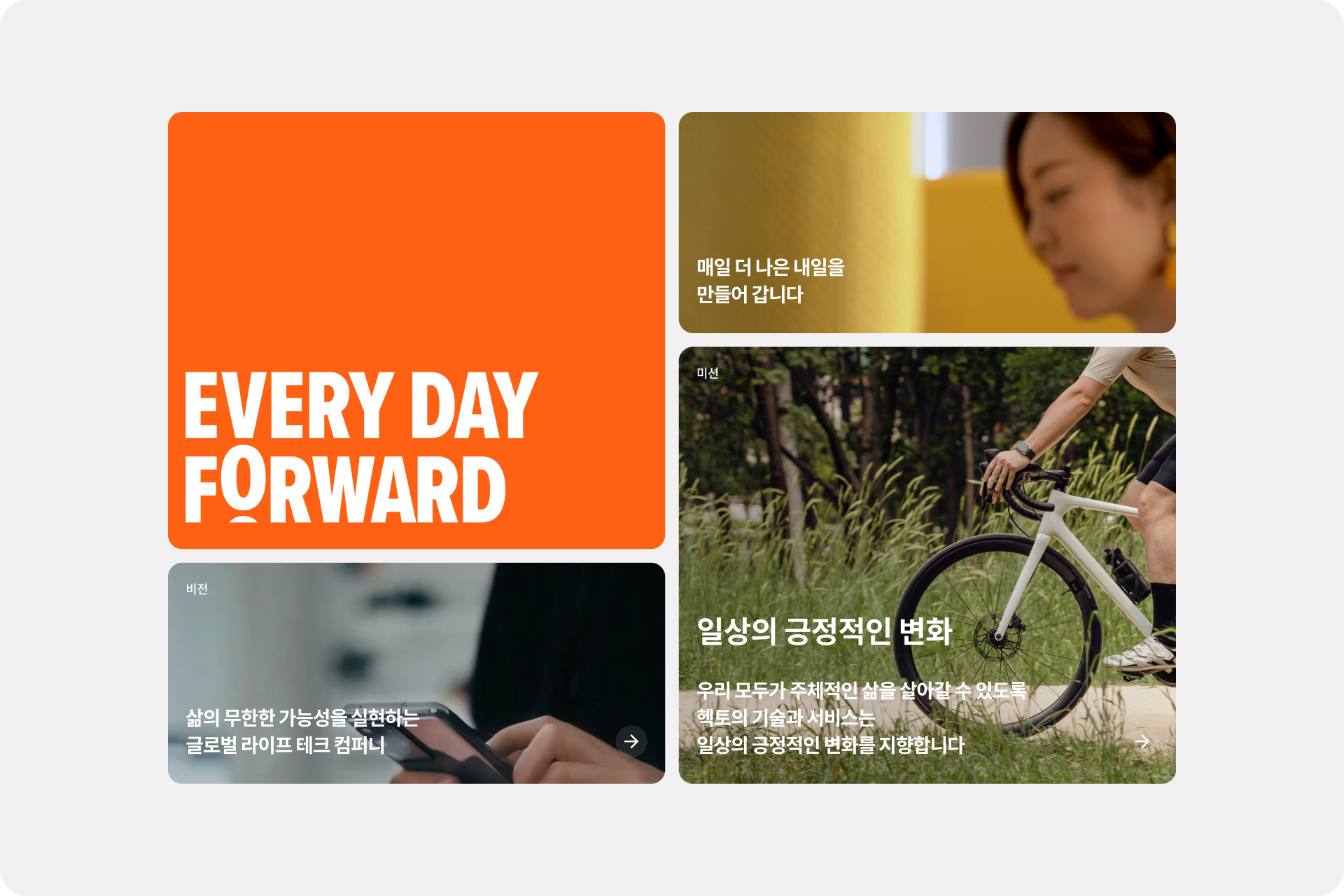 앞서 헥토 그룹은 2024년 내부적으로 새로운 CI 리뉴얼을 마련했다. 이후 ‘삶의 가능성을 실현하는 글로벌 라이프-테크 컴퍼니’라는 새로운 브랜드 아이덴티티를 온라인 공간에서 효과적으로 전달하기 위해 고민했다고. 크라픽은 사용자 경험을 중심으로 디자인을 최적화하고, 기업의 신뢰감과 혁신성에 초점을 맞춘 인터페이스를 구현했다.