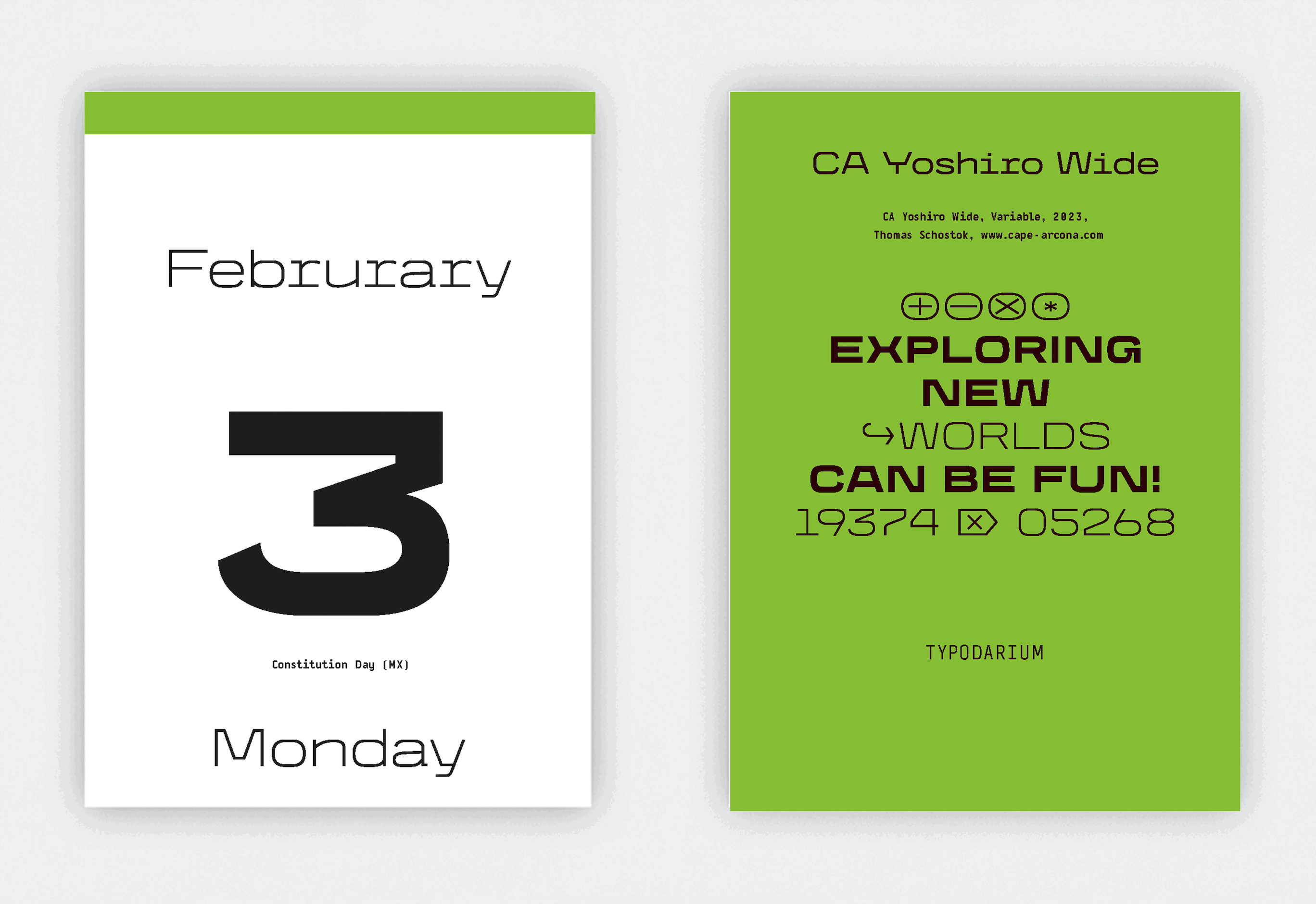 독일의 디자인 출판사 페를라크 헤르만 슈미트 마인츠Verlag Hermann Schmidt Mainz가 해마다 선보이는 일력 시리즈다. 매해 전 세계의 아름다운 글자를 선정해 그것으로 달력을 만든다. 페이지를 넘길 때마다 새로운 폰트를 감상할 수 있고, 서체를 만든 디자이너와 폰트 구입처 정보도 함께 수록했다. 하루에 한 번 달력을 보는 것만으로도 그해의 타이포그래피 경향을 확인할 수 있다. 2025년 달력에는 41개국 357명의 디자이너가 참여했다. 한 해에 걸쳐 넘겨 보는 타이포그래피 연감인 셈이다.