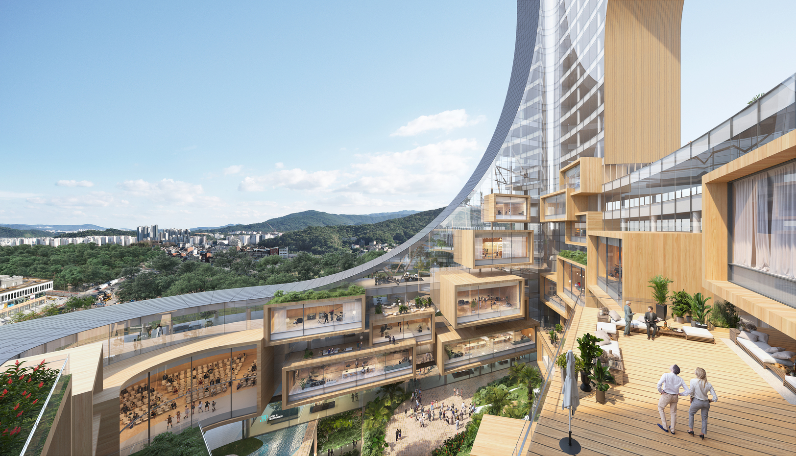 긍정적인 편입니다. 저는 디자인이 문제 해결의 산물이라고 보거든요. 예술 작품과 다르게 현실이 처한 문제를 해결하는 게 디자인의 숙명이죠. 그런 면에서 OMA의 설계 안은 정답을 찾았다고 생각해요. 동선이 여러 개로 나뉘고 입구를 다방면으로 낸 것도 지극히 동시대적 발상입니다. 비트코인 같은 게 만들어지는 시대잖아요. 비트코인의 핵심은 탈중앙화와 분산에 있죠. 만약 렌초 피아노나 헤어초크 & 드 뫼롱이 설계했다면 전혀 다른 그림이 나왔을 거예요. 상징적인 건물이 들어섰을 수도 있겠죠. 하지만 OMA는 그냥 중심 없는 지형을 만들고 끝을 냈어요. 지붕 위를 산책로처럼 걸어 다닐 수 있게 하고, 성큰으로 채광과 통풍 문제를 해결하고. 모든 것이 시대상과 맞아떨어진다고 봐요.