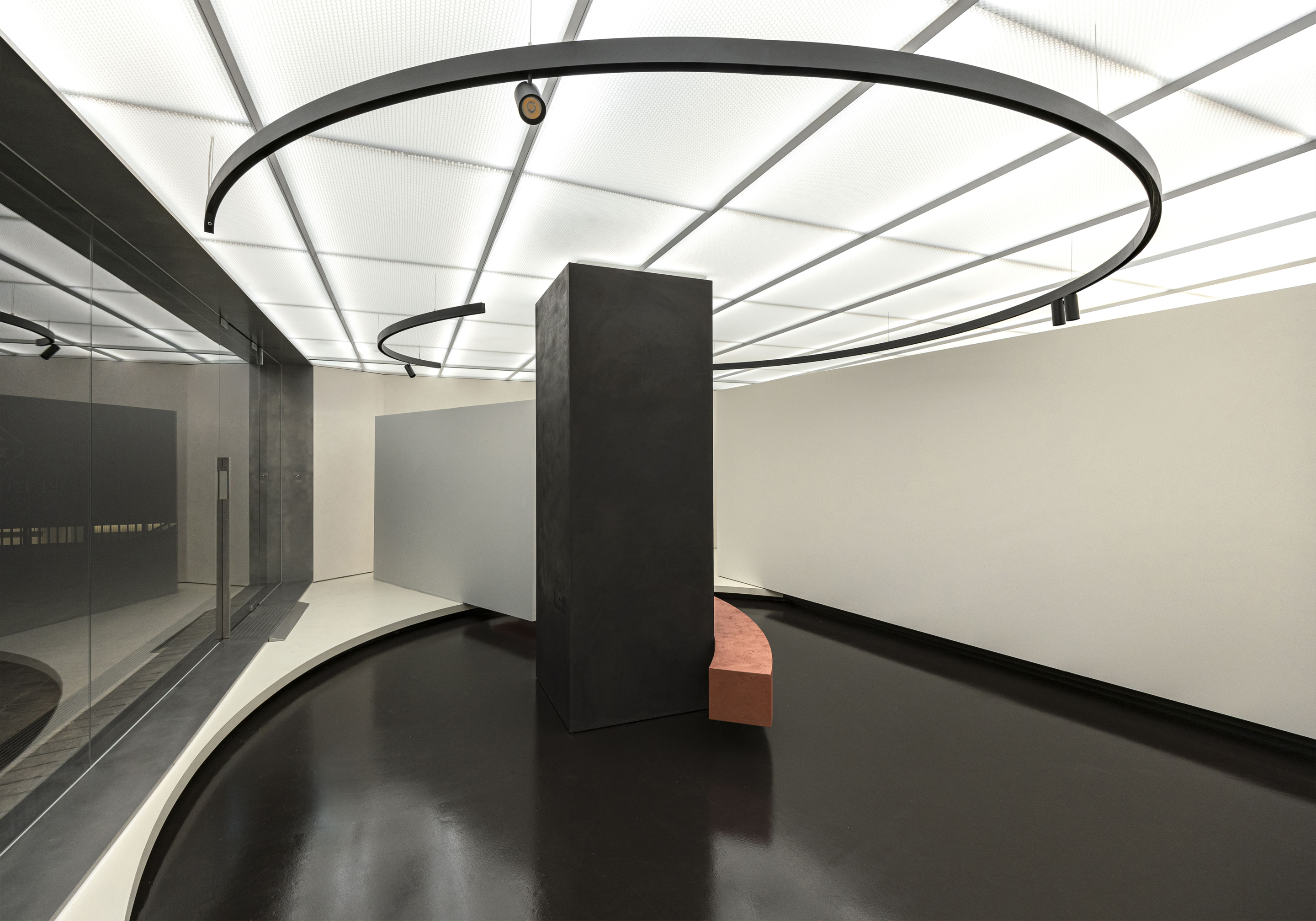 갤러리 내부는 기하학적 형태를 활용한 구성이 돋보인다. 직선과 곡선, 면과 입체, 원 등의 기본 도형들이 균형감 있게 배치되어 관람객이 공간을 자연스럽게 탐색할 수 있도록 설계되었다. 이렇게 생성된 형태의 조합은 공간 속에서 조화롭게 어우러지며, 관람객에게 또 다른 미적 경험과 새로운 시각적 흐름을 제공한다.
