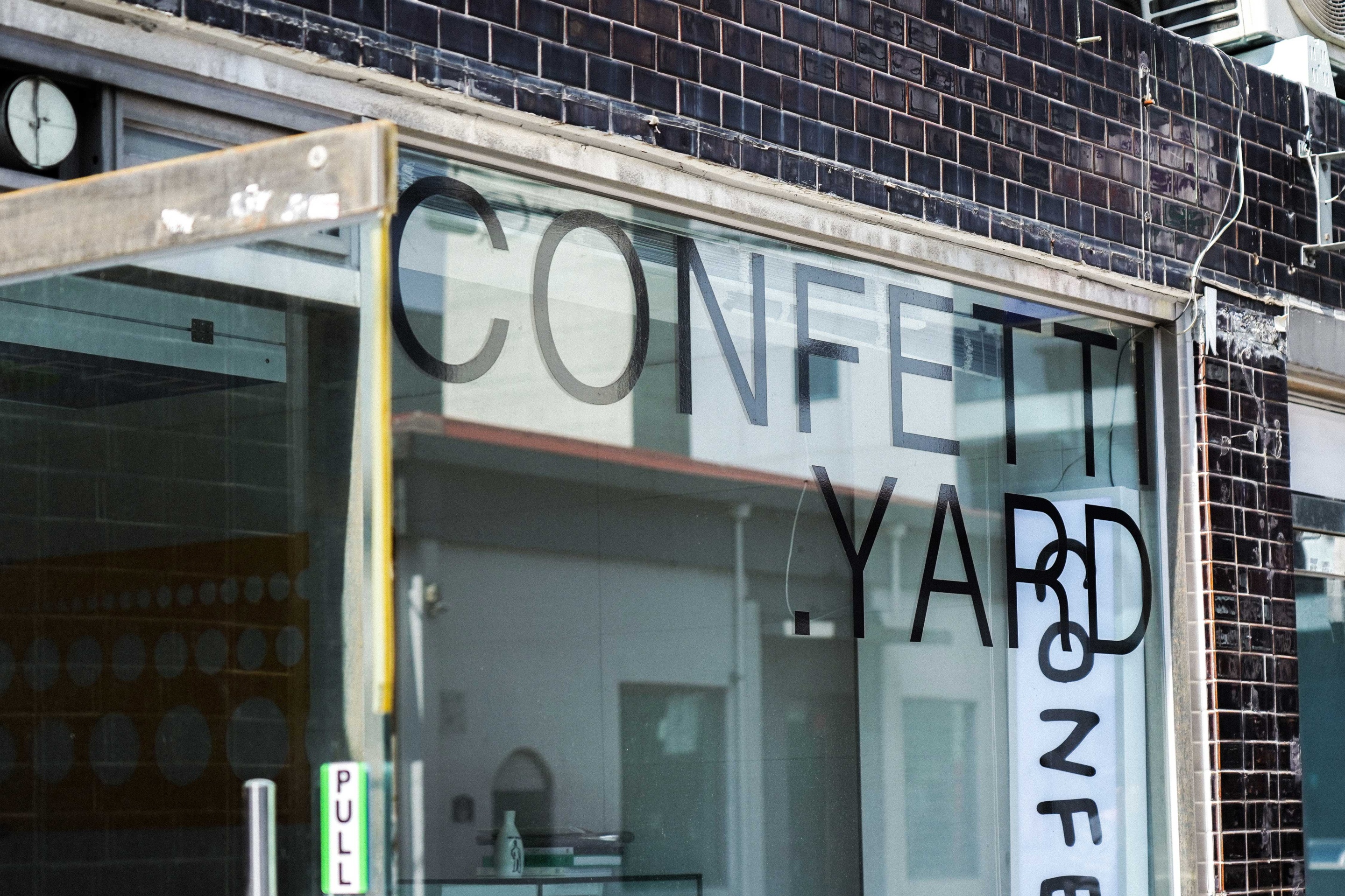 콘페티야드의 확장성을 실험해보는 공간으로, 여러 분야의 아티스트와 협업했던 콘페티쇼의 마지막 한 달을 준비해야 하고요. 곧 로컬 의류 브랜드 파운드 익스플로러와의 협업을 앞두고 있어요. 매장에 손님으로 오셨던 인연이 이어져 이번에 앞치마를 함께 만들게 됐어요. 단순한 베이킹 아이템이 아니라, 콘페티야드의 조형적인 감각을 담은 키친웨어나 일반 의류로 확장해보고 싶다는 생각을 계속 해왔거든요. 그리고 사실 1년 전부터 미뤄왔던 프로젝트라, 이렇게 말로 못을 박아야 할 것 같아요. (웃음)
