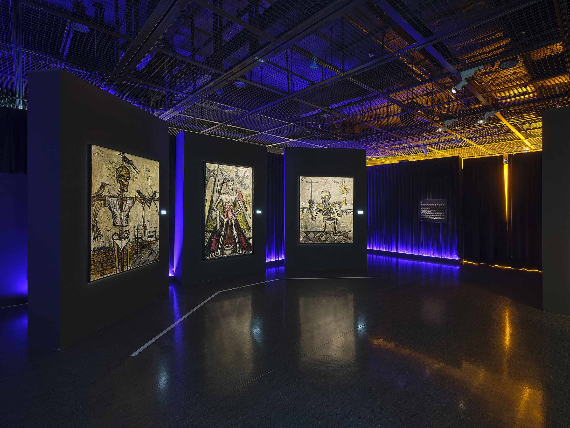 어떤 전시 공간은 작품의 배경에 머물고, 어떤 공간은 그 자체로 콘텐츠의 내면을 드러낸다. 지난해 4월 예술의전당 한가람디자인미술관에서 열린 〈베르나르 뷔페 – 천재의 빛: 광대의 그림자〉전은 후자에 가깝다. 프랑스 화가 베르나르 뷔페의 이 국내 두 번째 대규모 회고전은 공간 구성에 주목할 필요가 있다. 전시 디자인으로 환희와 절망이 공존한 뷔페의 삶을 경험하도록 했기 때문이다.