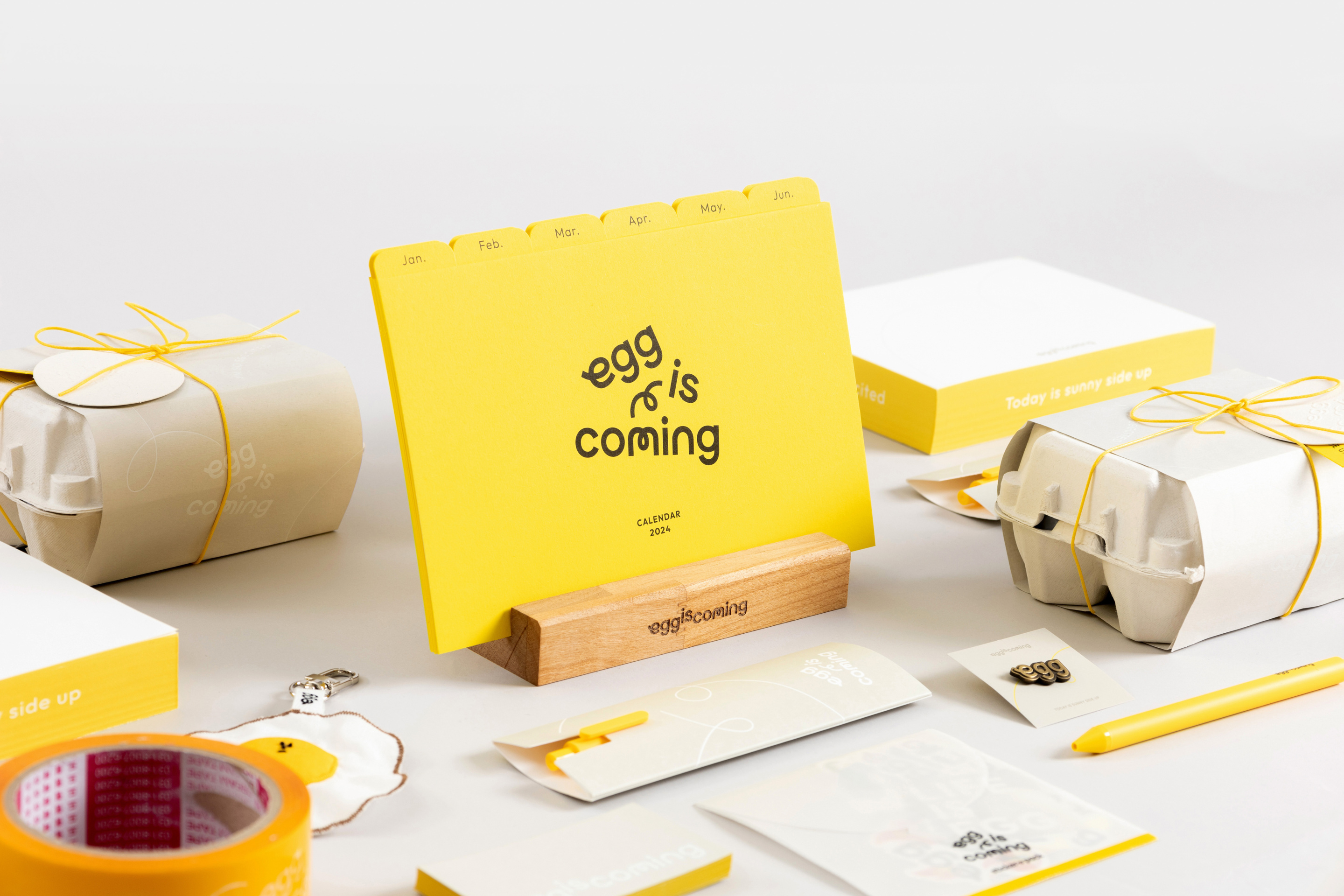 〈신서유기〉, 〈뿅뿅 지구오락실〉, 〈슬기로운〉 시리즈, 〈응답하라〉 시리즈 등 한국 콘텐츠의 현재를 이끄는 콘텐츠 회사 ‘에그이즈커밍(eggiscoming)’의 아이덴티티 디자인도 스팍스 에디션의 손에서 탄생했다. “계란이 왔어요”라는 친숙한 말에서 비롯된 회사명을 따라 스팍스 에디션도 계란 장수의 소리를 들었을 때의 설레고 기대하는 마음과 소소하게 기쁘고 즐거운 마음을 표현한 로고를 디자인했다. 디자인 과정에서 중요 포인트는 클라이언트의 요청에 따라 멋 부리지 않고 편안하면서도 위트가 있어서 귀엽기도 한 분위기를 내야 했던 것. 그래서 계란이 데굴데굴 굴러가는 움직임을 시각적으로 표현하고자 서체와 각 글자 간의 배치에 신경을 썼다. “사실 저희도 스튜디오 로고를 못 만들고 있거든요. 콘텐츠 브랜드는 확실히 변화무쌍하니까 하나로 정립하기가 어려워요. 에그이즈커밍도 마찬가지였지만, ‘계란이 왔어요’라는 문구에 담긴 명확한 이야기가 있어서 재미있게 작업할 수 있었어요.” 한편, 장준오 디자이너는 회사 구성원들의 따뜻함도 디자인에 영향을 미쳤다고 고백했다. “에그이즈커밍 직원분들과 소통하면서 이분들은 자신을 닮은 작품들을 계속 만들고 계셨다는 생각이 들었어요. 따뜻하고 위트 있고 사람 냄새나는. 이 부분이 브랜딩 작업을 하는데 핵심이었지 않나 싶어요.”
