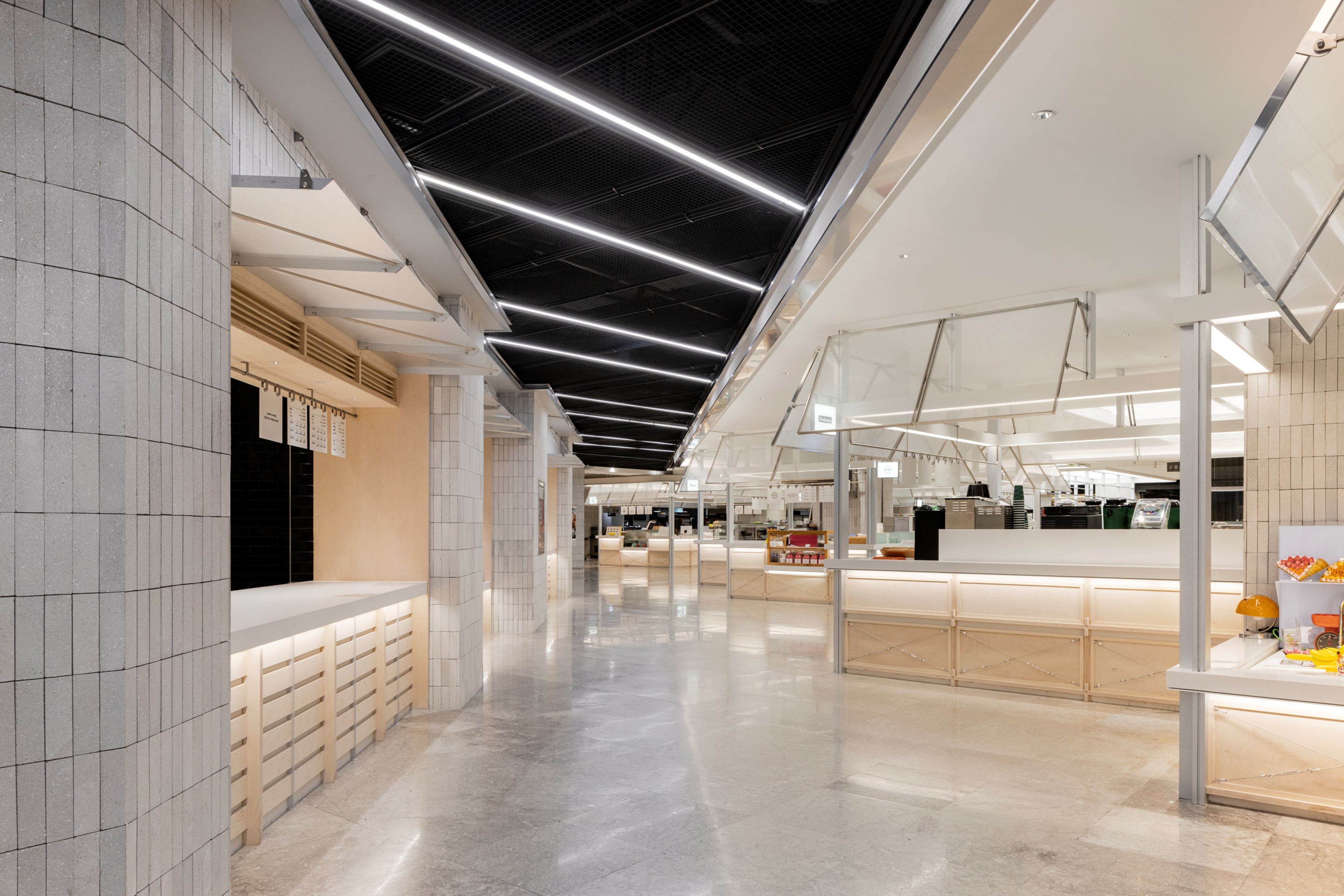 핵심 콘셉트는 ‘낮과 밤의 시장’으로 구체화했다. 영역을 기능적으로 구분해 낮의 시장은 식사 존으로, 밤의 시장은 델리 존으로 설정했다. 전자는 소통과 만남이라는 기능에 충실하도록 사람의 움직임과 생기가 드러나는 방향성을 중심에 두었다. 후자는 가판대를 정교하게 비추는 조명 연출을 통해 상품과 서비스 자체에 집중할 수 있는 분위기를 우선으로 고려했다. 정진호 라보토리 총괄 디렉터는 “도시 속 다양한 식문화가 엮여 있는 풍경을 만들고자 했다”고 설명했다. 전통 시장에서 맛있는 먹거리와 즐거운 이야깃거리를 발견할 때의 설렘처럼, 푸드 센터에서 각 브랜드가 자신만의 이야기를 펼쳐나갈 수 있기를 바랐던 것.