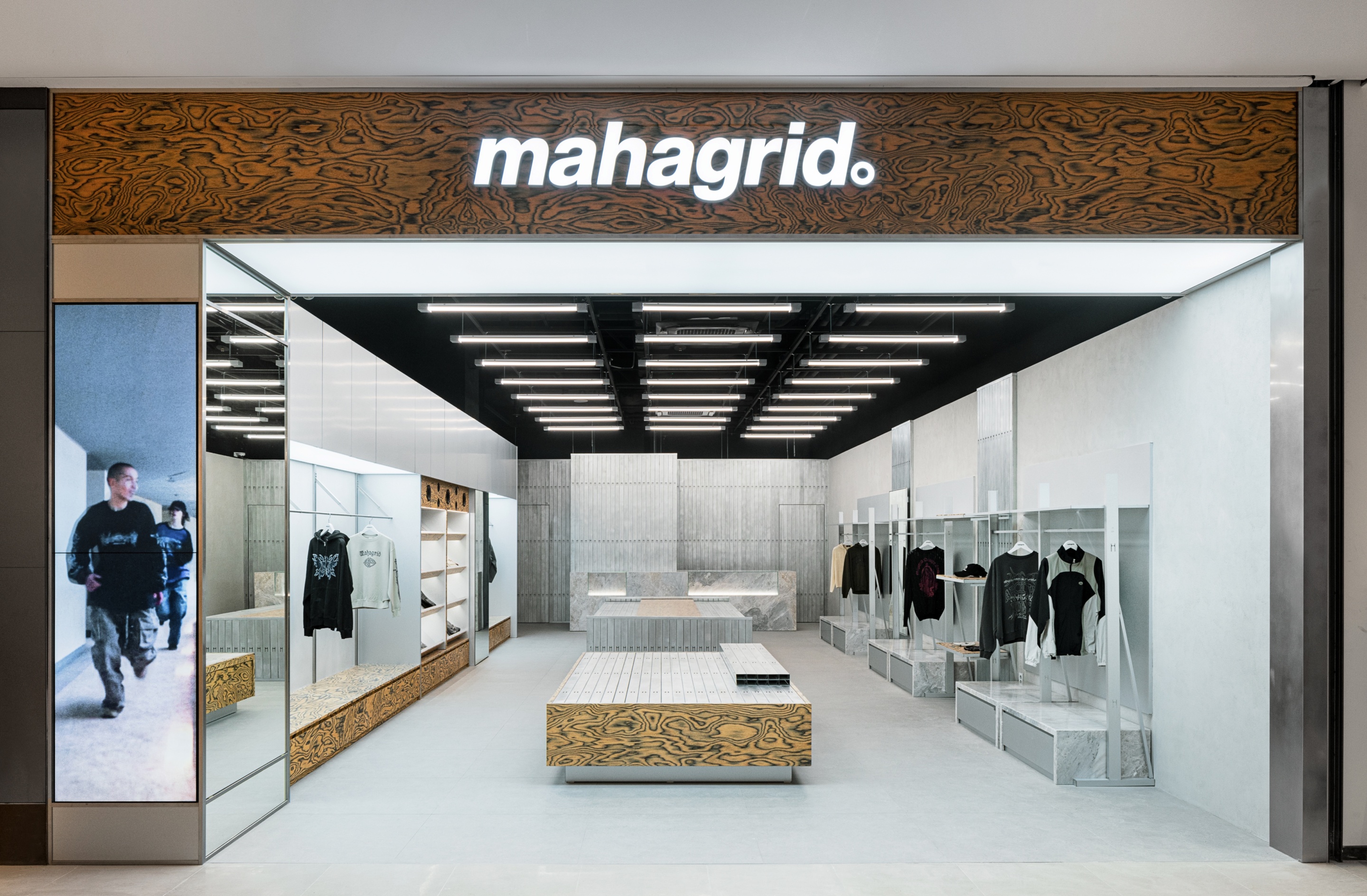 오랜 시간 온라인 채널에만 머물렀던 스트리트 캐주얼 브랜드 ‘마하그리드’가 수원에 첫 오프라인 거점을 열었다. 브랜드의 첫 오프라인 공간인 만큼 판매 그 이상의 의미를 지녀야 했다. 이에 코브스튜디오는 이곳을 ‘마하그리드의 정체성을 시각적·공간적으로 구현하는 입체적 거점’으로 정의하고, 브랜드 언어를 공간으로 번역하는 작업에 주력했다. 매장 전반에 적용한 대담한 무늬목 패턴은 브랜드를 직관적으로 각인시키는 시각적 장치이다. 디테일한 타공과 반복되는 텍스처는 스트리트 브랜드 특유의 그래픽 감성을 공간으로 확장한다.