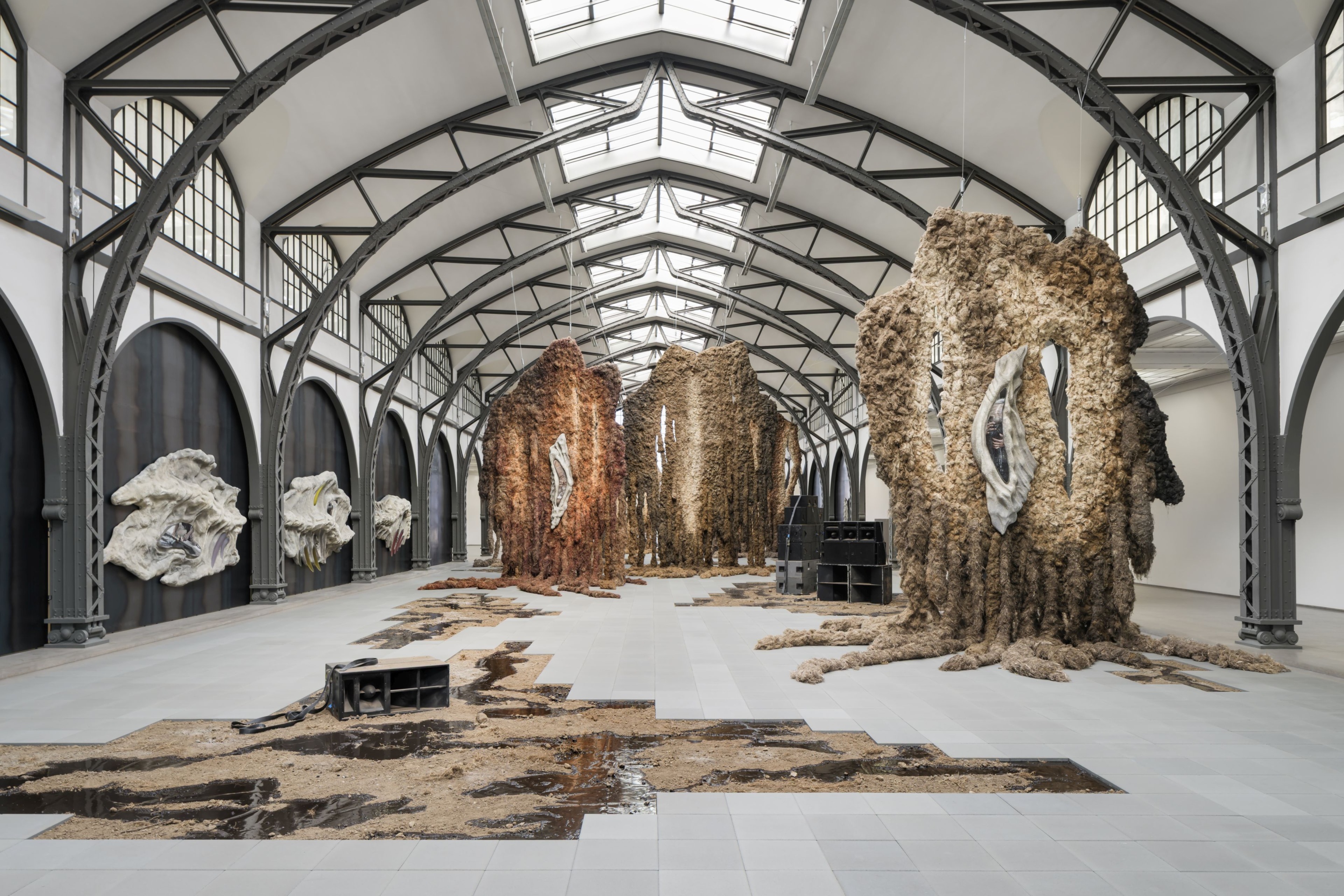 전시장에 들어서면 우선 관람객의 이목을 끄는 6가지 태피스트리가 천장부터 바닥까지 매달려 있다. 차분한 색상, 거친 질감, 가지가 뻗어 있는 덩굴손은 동물의 가죽이나 다른 세계의 생물을 연상시킨다. 아마와 대마로 만든 직물은 수작업으로 직조하고 식물성 염료로 염색한 것이다. 체코 보헤미안 지역에서 수백 년 동안 이어져 온 아마와 대마의 재배 및 가공 전통은 방적기와 직물 공장이 들어서면서 산업화가 시작되면서 계속되었지만, 2차 세계대전 이후 면화 등 식민지 배경을 가진 더 생산적인 수출 작물의 수입으로 인해 중단되는 경우가 많았다. 작가는 이 지역에 마지막으로 남은 아마 및 대마 가공업체와 함께 작업했다. 외부에서 보면 이 태피스트리는 시야를 방해하고 변화하는 그림자를 드리운다. 내부에는 태피스트리가 평화와 안전의 보호 구역을 만들어 방문객들이 그 사이를 걸을 때 그들을 감싸준다.