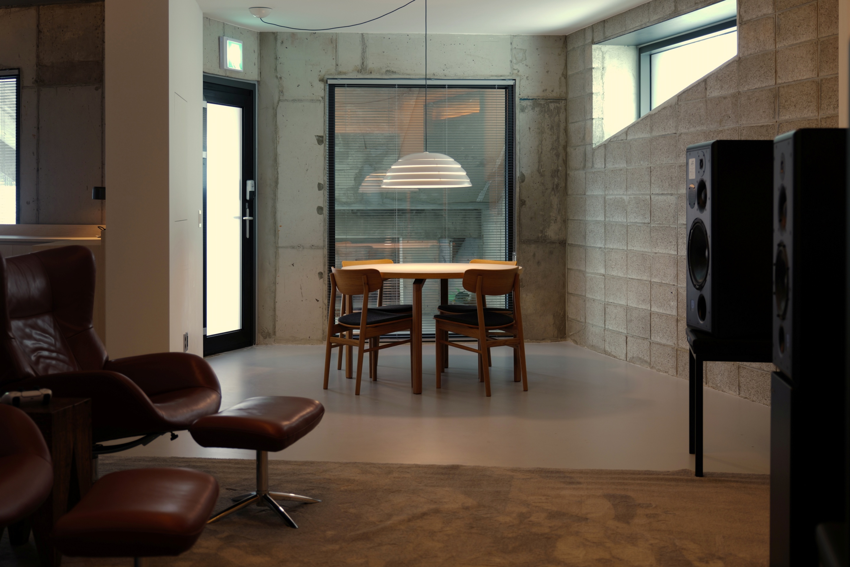 서비스센터의 회의실은 단순히 빠르게 결론을 내리는 자리가 아니라, 브랜드의 감도와 방향을 언어로 정리하고, 모두가 그 본질을 이해하는 공간이다. 회의는 싸우는 자리가 아니라 디자인이 시작되기 전에 감도를 맞추는 자리이며, 그 과정을 통해 이후의 작업이 훨씬 빠르고 명확해진다. 실제로 과거 제주도에서 한 클라이언트와 2박 3일간 워크숍을 진행하며, 이틀 동안 생각을 시각화하고 좁히고, 마지막 날에 각 파트의 핵심을 모두가 납득할 수 있는 언어로 정의한 후 디자인을 시작해 큰 시간을 절약한 경험도 있기에 회의 공간을 더욱 신경 썼다.