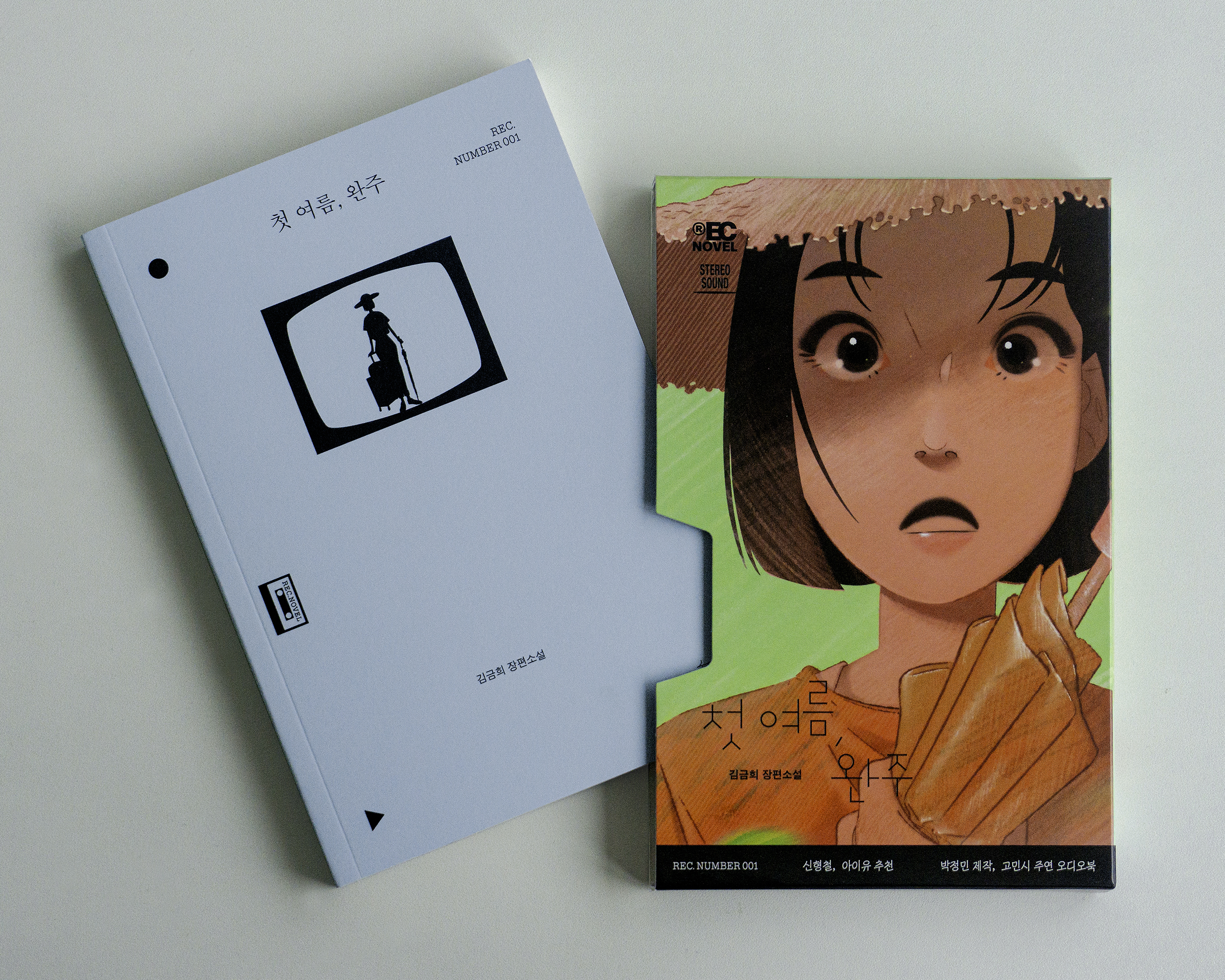 ‘레코딩’이라는 콘셉트 아래 매 호에 맞는 별도의 케이스를 디자인하는 방향을 생각하고 있어요. 책의 내용을 표현하는 장치로서 케이스를 고민한 결과죠. 그래서 본 책에는 고정 로고, 케이스에는 변화 가능한 플레이어블 로고를 적용했어요. 〈첫 여름, 완주〉에는 비디오 가게와 비디오테이프라는 키워드를 반영해 레트로 비디오 자켓과 VHS 스타일 로고를 조합했지만, 다음 권에는 또 다른 형태가 될 수 있어요.