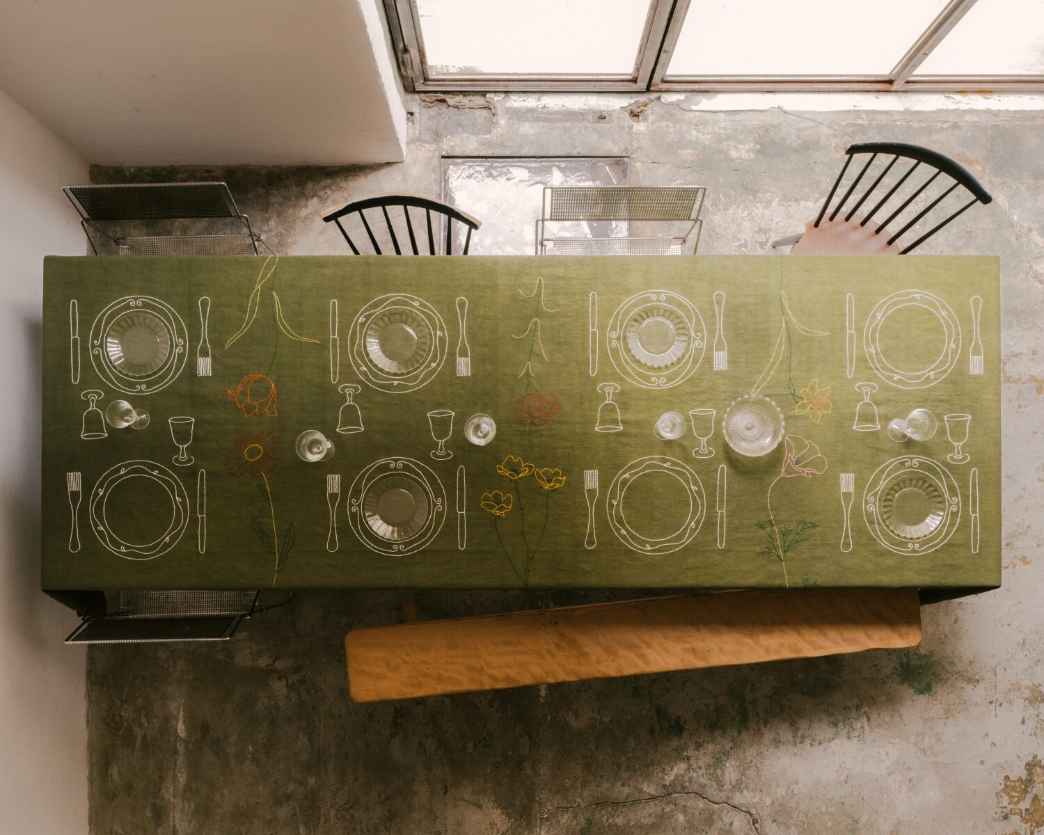 가장 애착이 가는 작품은 트롱프뢰유(trompe-l’œil) 기법으로 수놓은 식탁보예요. 이 작업은 실로 떠낸 하나의 기억 조각이자, 가족과 나눈 소중한 순간들을 고스란히 담고 있어요. 저희 집 식탁은 언제나 다양한 패턴의 빈티지 식기로 차려졌는데, 아버지가 모아온 그릇들을 자유롭게 섞어 사용하는 풍경이 너무도 자연스러웠죠. 그래서 매번의 식사는 마치 작은 축제 같았고, 그 장면들이 식탁보 위에 스며들게 되었어요. 이 작품에는 향수 어린 감정이 짙게 배어 있어요. 고향의 따뜻한 시간들을 떠올리게 하고, 저를 다시 중심으로 돌아오게 만드는, 아주 개인적이고 소중한 작업이에요.