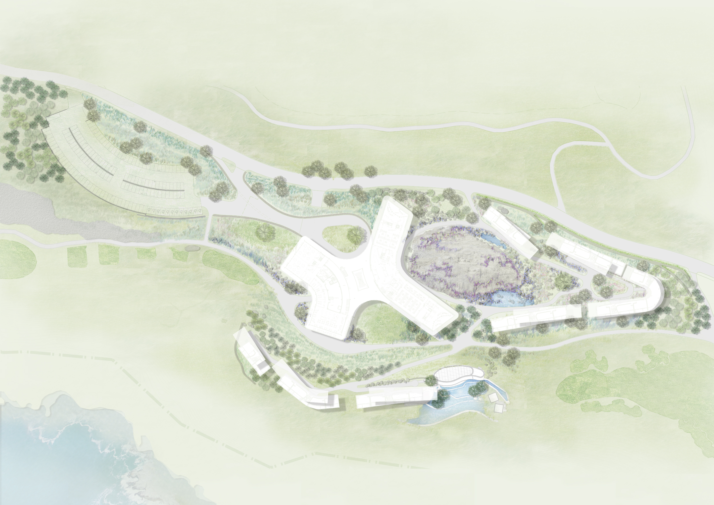 건축과 조경의 시너지를 엿볼 수 있는 프로젝트도 눈길을 끈다. 조민석 건축가와 함께 한 ‘제주 오설록'(2011, 2023) 프로젝트와 남해 ‘사우스케이프'(2013) 프로젝트가 대표적이다. 땅의 조건을 읽고 공간을 구축하는 과정에서 조경가와 건축가의 각기 다른 시각과 이를 융합해 결과물을 도출하는 과정에 대한 기록물들을 살펴볼 수 있다.