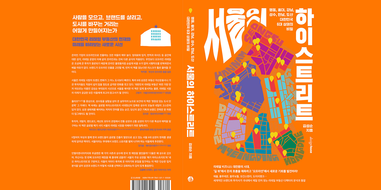 책 <서울의 하이스트리트>는 서울의 대표 상권 6곳을 중심으로 오프라인 리테일의 새로운 가능성을 제시한다. 팬데믹 이후에도 살아남은 거리들에는 브랜드 전략, 공간 기획, 소비자 경험 설계의 결정적 단서들이 숨어 있는데, 단순한 입지 분석을 넘어 공간과 문화 그리고 자본이 교차하는 리테일 생태계를 실무자의 시선으로 풀어낸다.