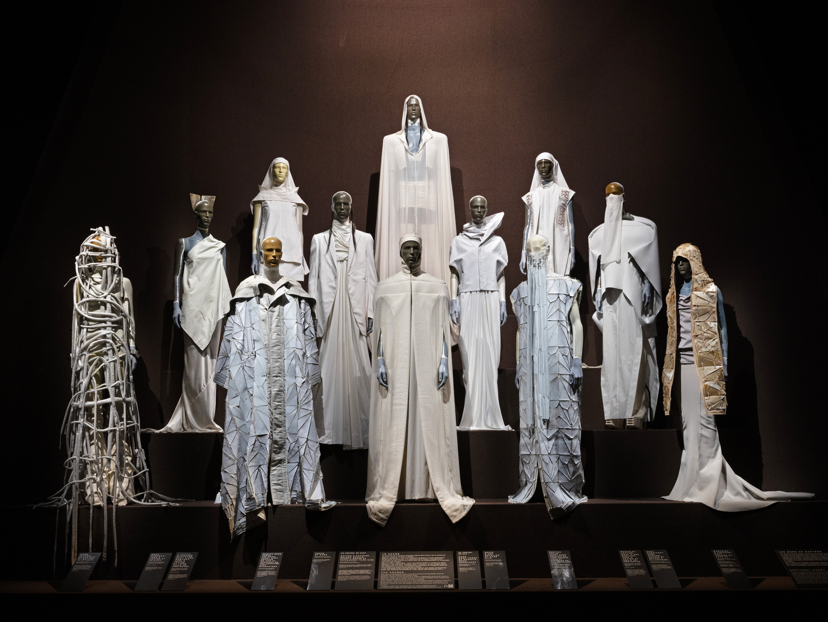전시는 총 7개의 테마 공간으로 구성되며 각각은 오웬스가 구축해온 미학적 세계의 드러낸다. 그중 ‘성의 역설(Paradoxe des sexes)’ 섹션은 그가 여성성과 남성성을 어떻게 해체하고 조립해 왔는지를 보여주는 주요 장이다. 여성을 향한 숭배적 시선과 남성을 향한 비판적 성찰은 그가 창조한 실루엣 안에서 공존한다. 섬세하고 유려한 드레이핑의 여성복과, 거칠고 공격적인 남성복은 단순히 젠더의 구분을 반영하는 것이 아니라, 그 경계를 물리적으로 흔들어댄다. “나는 여성에게 경외심을 품고 있고, 남성에게는 (내 자신을 포함해) 가혹하다.” 는 말처럼 그의 옷은 단지 입는 몸을 감싸는 것이 아니라, 사회가 요구하는 젠더 서사를 날카롭게 꿰뚫는 질문이다.
