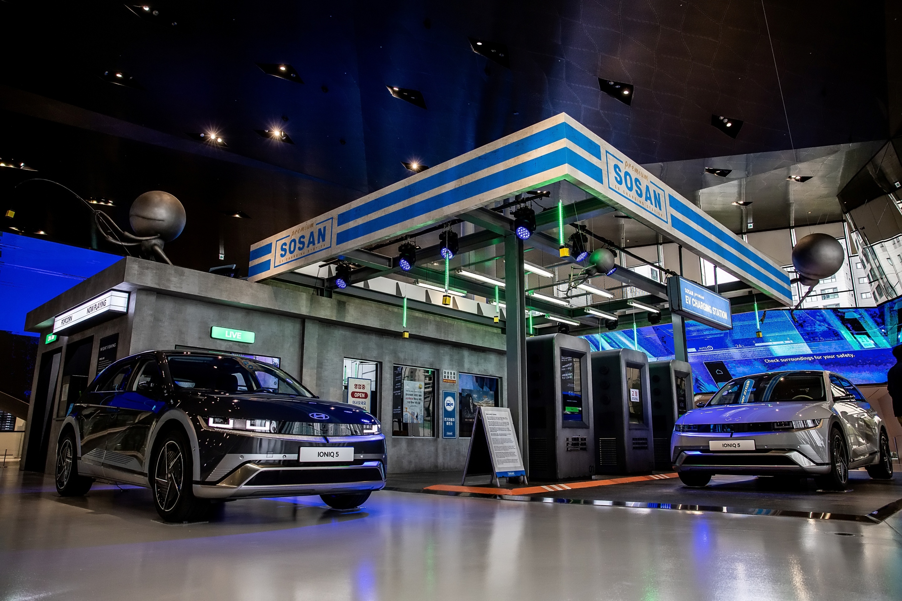 현대자동차의 슬로건이 ‘Progress for Humanity’, 즉 인류를 향한 진보를 추구하는 브랜드인 만큼 여기서 한 발짝만 더 나가면 재미있는 이야기가 나올 것이라고 생각했다. 평소 전기차의 사운드가 외계의 우주선처럼 느껴지기도 했고. 차량에 탑재된 카메라 시점으로만 촬영해야 한다는 당위성을 충족하면서도 흥미로운 사건을 만들 수 있을 것 같아 SF를 선택했다. 전기차가 오래 머물러도 어색하지 않은 전기차 충전소를 주된 배경으로 설정했고, 이곳에서 일어날 만한 사건을 생각하다 보니 전기를 흡수하는 외계 생명체를 떠올리게 됐다.