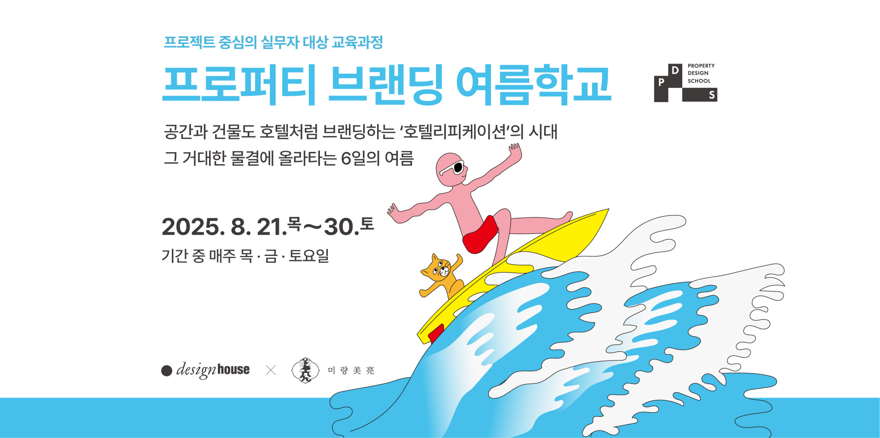 프로퍼티 브랜딩 여름학교는 ‘디자인하우스’와 프로퍼티 브랜딩 컨설턴시 ‘미량美亮’이 공동 운영하는 국내 최초의 프로퍼티 브랜딩 전문 교육 프로그램입니다.