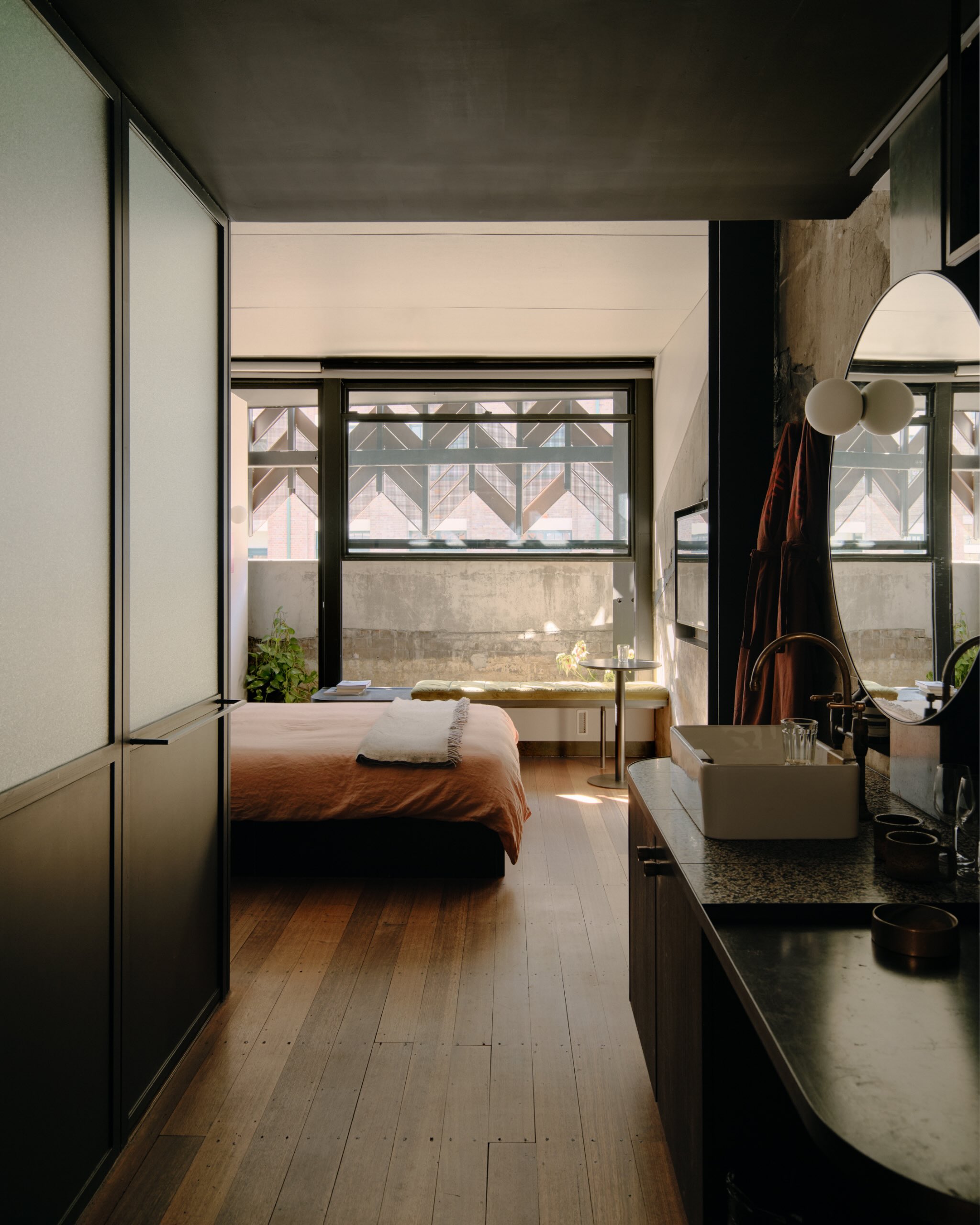 겉모습은 특유의 고풍스러운 붉은 벽돌 건물을 그대로 유지하고 있지만 문을 열고 들어서는 순간 높은 천장과 대형 창문이 펼쳐지는 세련된 인더스트리얼 감성과 여유로운 시드니의 라이프 스타일이 절묘하게 어우러진 공간이 나타난다. 객실은 총 29개로, 각각의 디자인이 미묘하게 다르다. 노출된 콘크리트 천장, 리넨 소재의 침구, 따뜻한 색감의 나무 가구가 조화를 이루며 공간 전체에서 느껴지는 빈티지한 감성과 편안함이 인상적이다. 일부 객실에는 시드니의 푸른 하늘과 도시 풍경을 만끽할 수 있는 발코니가 마련되어 있다. 미니바에는 현지에서 생산된 와인과 수제 스낵이 채워져 있어 호텔 안에서도 시드니의 맛을 즐길 수 있다.