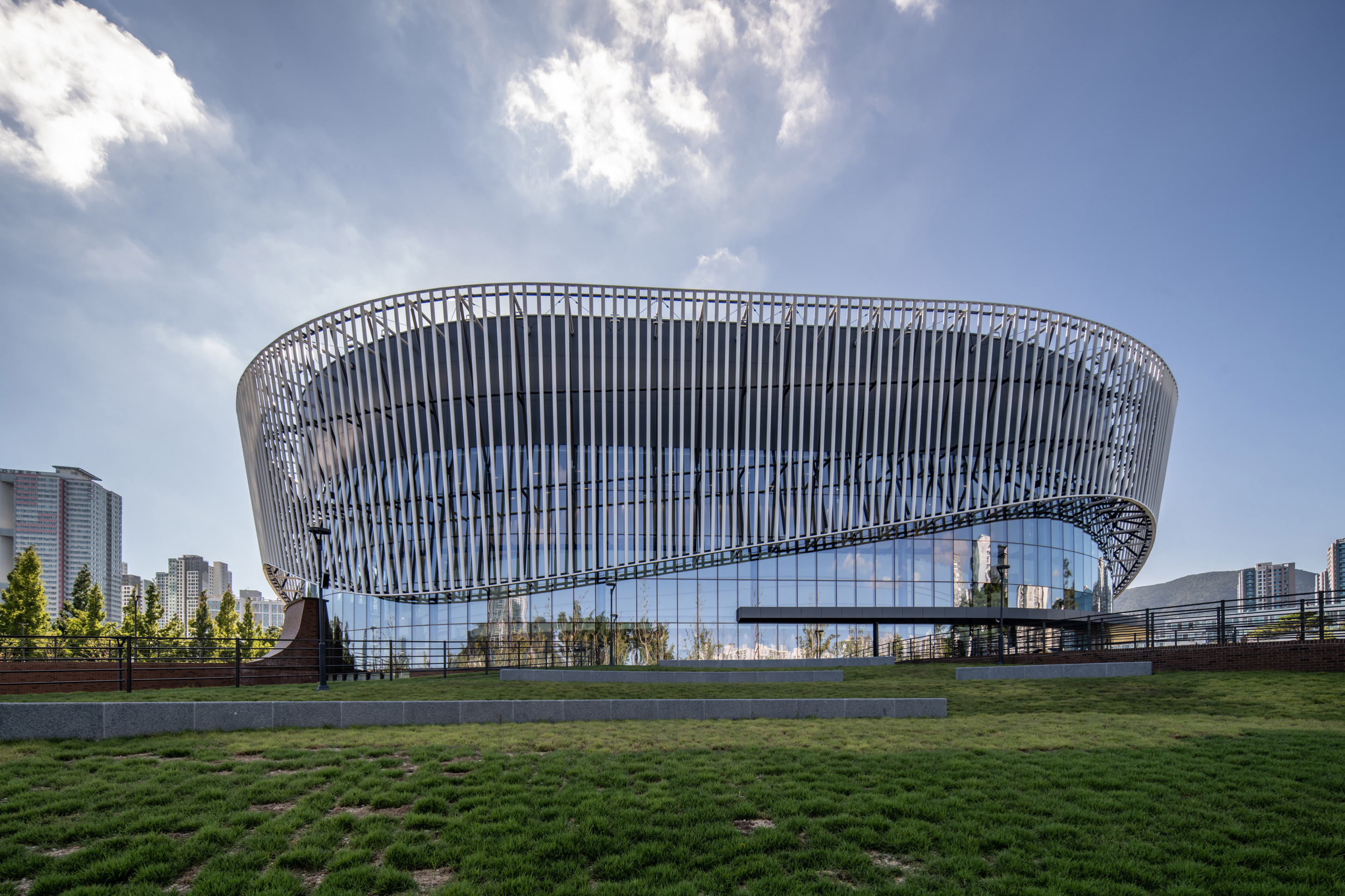 설계는 dmp건축이 주관하고 해안건축, 아이엔지건축이 공동 참여했다. 외관은 위에서 보면 대지를 움켜쥔 듯한 형상을, 측면에서 보면 파도 위를 출항하는 배의 이미지를 하고 있다. 대표 건축 주관사인 dmp건축은 도시에 뿌리내릴 새로운 기억을 시각적으로 구현했다고 설명한다. 외관의 각 요소들은 물리적 경계를 추상화해 제거함으로써 시민들이 흐름 속에서 공간적 경험을 공유하고 연속적인 호기심을 느낄 수 있도록 의도했다. 땅과 건물이 이어지며 만들어낸 곡선은 입면에 리듬을 주고 도시 풍경 속에 유기적인 움직임을 형성한다.