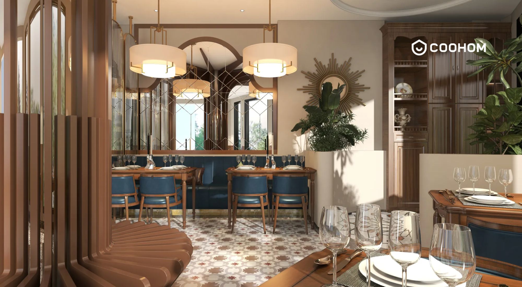 쿠홈의 소프트웨어를 이용한 인테리어 디자인 작업. 완성된 렌더링 이미지. 실사 사진에 가까운 퀄리티로 생성되는 렌더링 이미지가 쿠홈 만의 차별점이다.