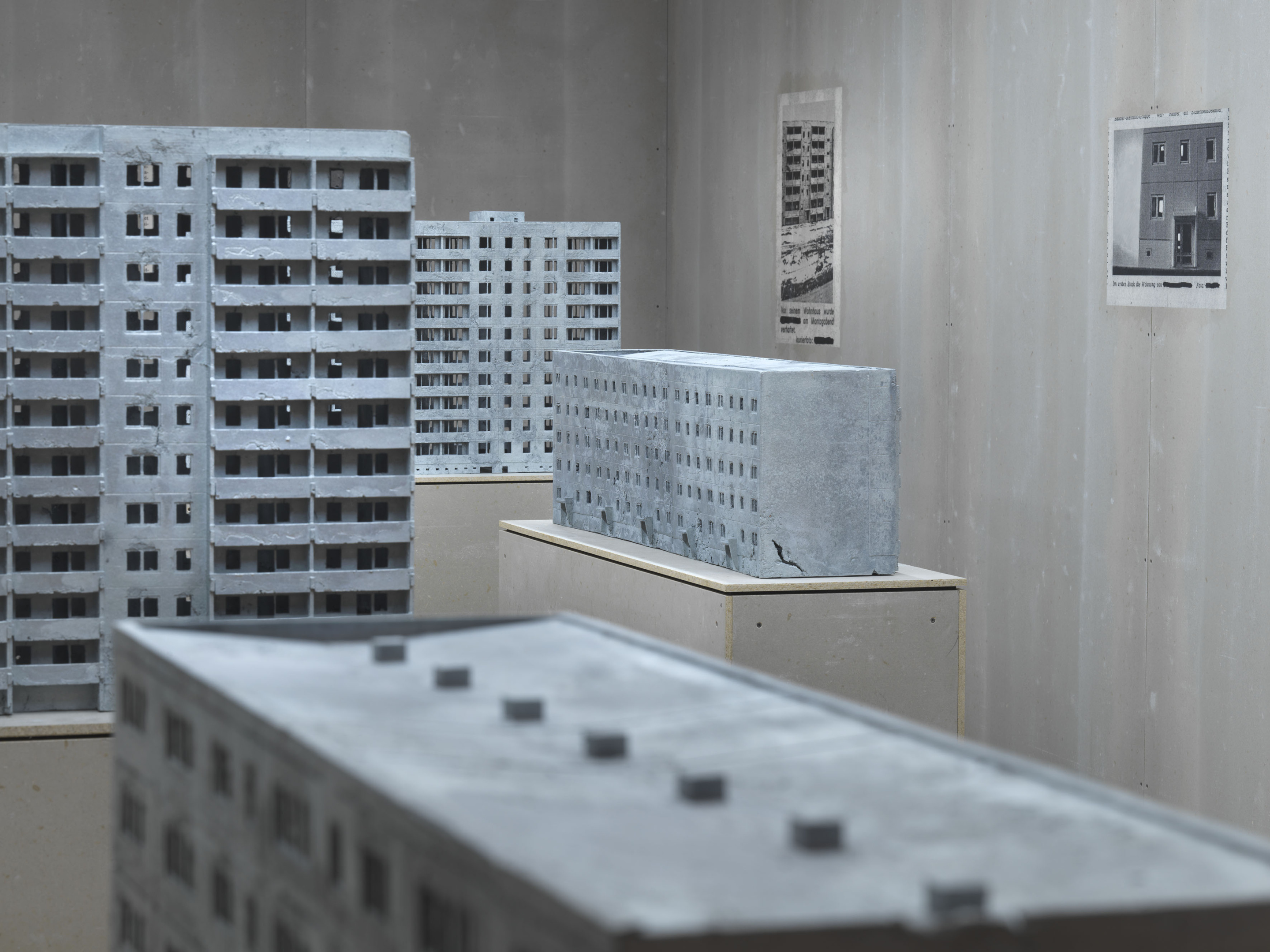 마르쿠스 드레이퍼(Markus Draper)의 설치 연작 ‘회색지대’ 역시 플라텐바우의 역사를 재맥락화한다. 이번에 전시된 ‘노이브란덴부르크, 트라버알레'(2015)와 ‘마그데부르크, 한스-그뤼딕-슈트라세'(2015)는 실제 동독의 플라텐바우를 정밀한 모형으로 재현한 것이다. 이 건물들은 1980년대 동독 국가보안부(슈타지)의 도움으로 서독의 좌익 테러 조직 RAF(적군파) 구성원들이 은신했던 바로 그 장소들이다. 노이브란덴부르크와 마그데부르크의 평범해 보이는 아파트 단지 안에서 서독의 테러리스트들이 새로운 신분으로 생활했다는 역설적인 상황을 모형으로 구현했다.