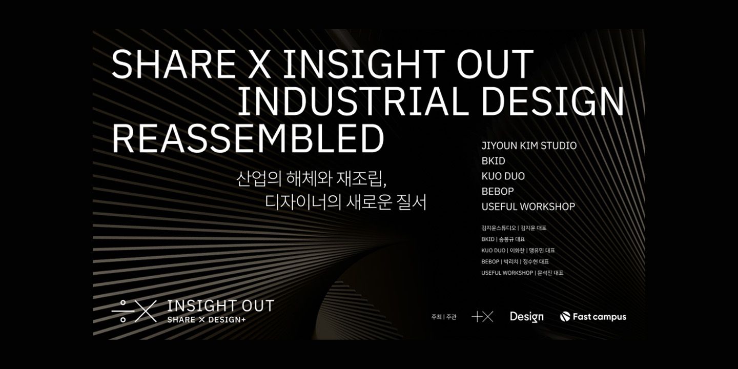 ‘Made in Korea’. 오랫동안 제조강국 대한민국을 일컫는 수식어였다. 하지만 산업의 체질 전환이 이뤄지고 시대가 변하면서 이 표현은 무색해지고 있다. 공장의 해외 이전, 경기침체, 보호무역…. 이에 따라 산업디자인의 양상도 변하고 있다. 쉐어엑스 인사이트 아웃 2는 낡은 패러다임에서 벗어나 새로운 길을 모색 중인 산업 디자인 5팀의 이야기를 공유하는 자리다.