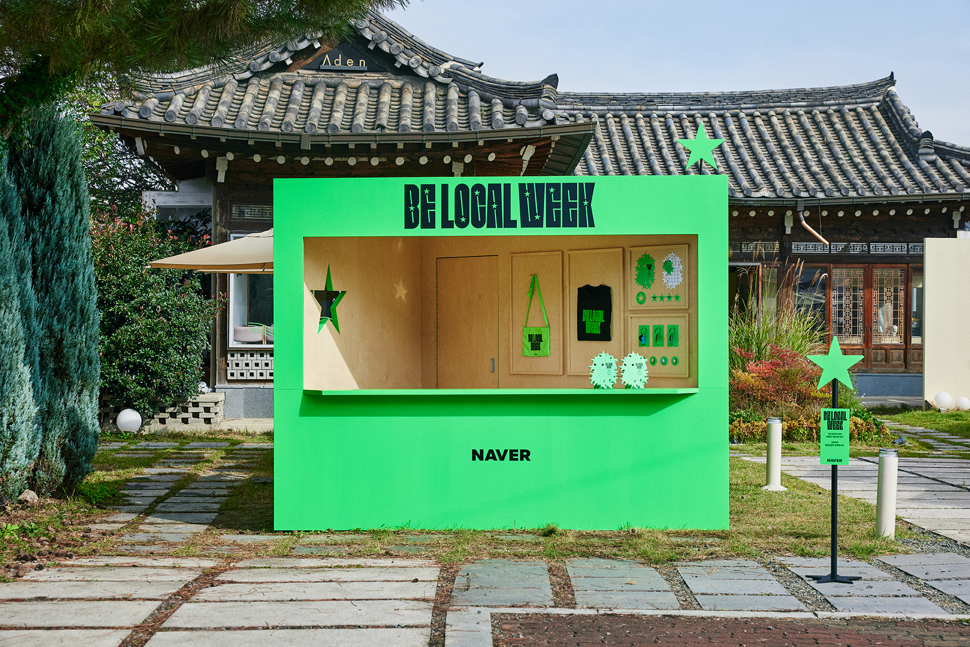 한편, 황리단길에는 비로컬위크 경주를 알리기 위한 부스와 설치물도 곳곳에 배치되었다. 네이버의 그린 컬러를 활용한 설치물은 황리단길의 한옥들과 어울리는 동시에 눈에 확 튀어 호기심을 끌었다. 캠페인에 참여한 로컬 상점의 문 앞에도 같은 색의 별을 달아 연계성을 강조했다. 이 밖에도 리플렛, 포토카드과 같은 작은 부분까지 신경 써서 디자인하여 인상 깊은 이벤트를 완성했다.