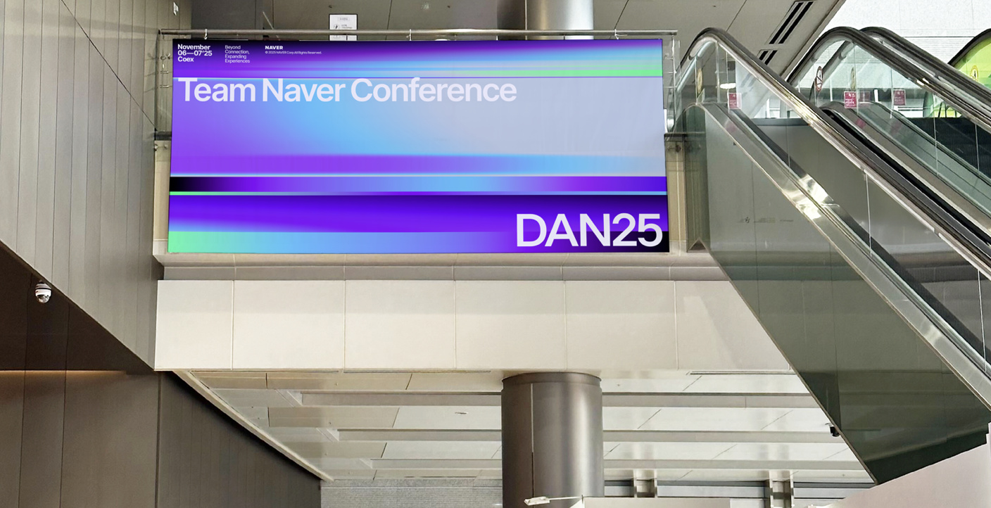 2023년부터 매년 개최하는 단DAN은 네이버의 다양한 영역을 총망라한 콘퍼런스다. 지난 11월 6일과 7일 이틀에 걸쳐 진행한 이번 행사는 기술, 크리에이티브, 서비스, 비즈니스 등을 포괄하며 통합 콘퍼런스 플랫폼으로 진화했다. 일상의 작은 변화부터 새로운 생태계로의 도약까지 끝없이 확장되는 경험의 로드맵을 공유하겠다는 의지는 슬로건 ‘연결의 진화, 경험의 확장’으로 축약됐다. 디자인도 사용자의 일상을 하나의 흐름으로 연결하고 실행하는 진화를 시각화하고자 했다. ‘연결과 경험의 확장’이라는 키워드가 현장에도 자연스럽게 녹아들게 했다. 연사들의 인사이트를 들을 수 있는 키노트와 딥다이브 세션, 그리고 키노트에서 언급한 첨단 기술을 체험할 수 있는 그라운드 등을 마련해 콘퍼런스의 경험을 한층 다채롭게 확장했다.