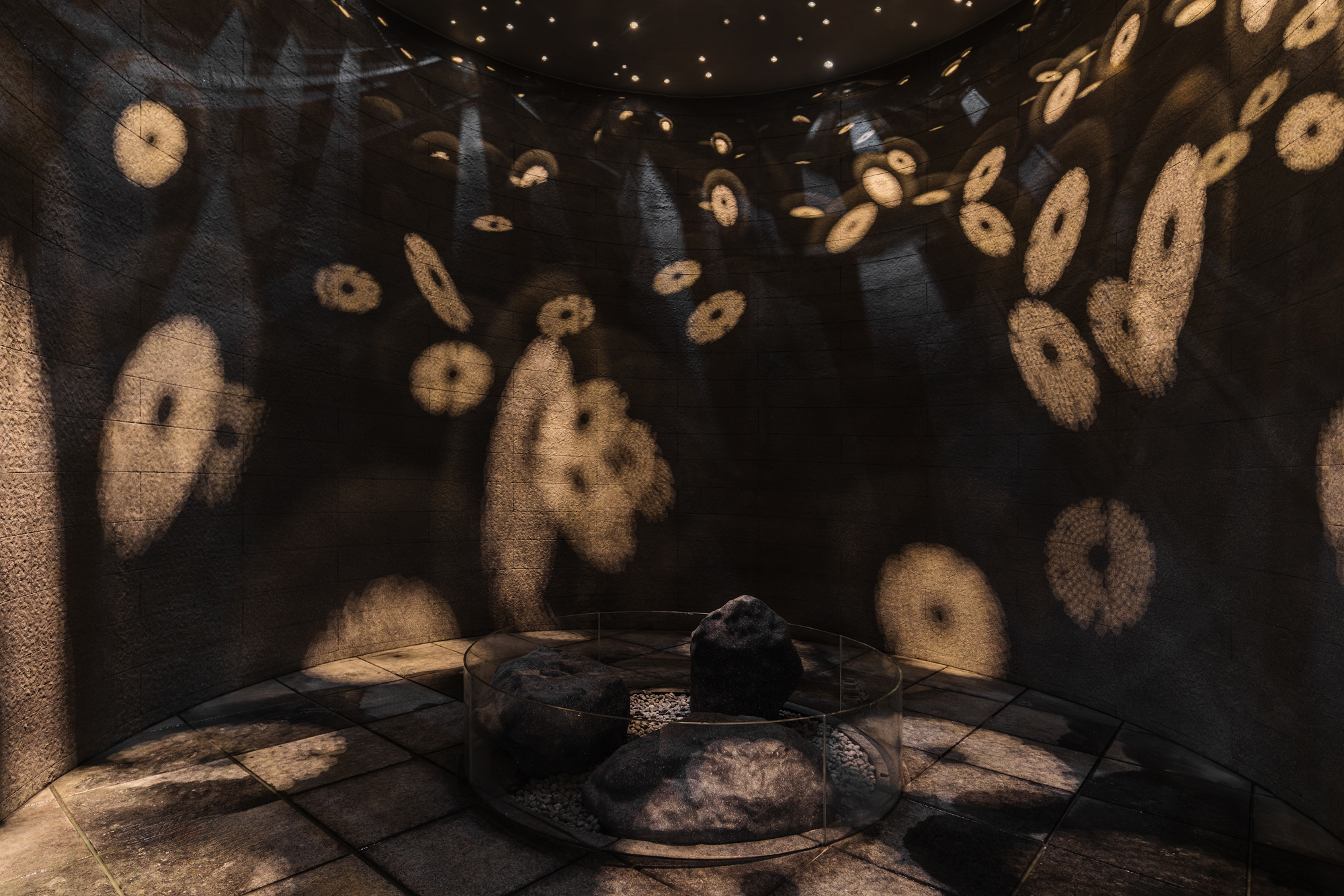리조트로 불국사와 분황사, 동궁과 월지, 선덕여왕의 모란도 등 경주의 상징적 문화를 공간 언어로 재해석했다. 공간 기획은 신라의 불교 수행법 삼도(茶道· 花道· 香道)에서 출발했다. 차와 꽃, 향의 행위는 감각을 통해 마음을 정화하고 세계와의 관계를 새롭게 바라보는 수행적 행위로, 방문객이 머무는 동안 자연스럽게 경험하도록 설계했다. 장인 정신을 담은 객실은 불국사와 석굴암을 만든 장인의 구조와 디테일을 적용했다. 단단한 석재, 목재, 흙의 물성은 공간의 중심이 된다. 리조트의 핵심 공간인 스파 & 테라피 존은 ‘동궁과 월지’의 정원을 현대적으로 재해석했다. 낮은 조도와 좁은 통로에서 따뜻한 빛과 개방된 수면이 열리며 물, 돌, 빛의 관계를 통해 감각의 층위를 열어가는 치유적 구조로 설계했다.