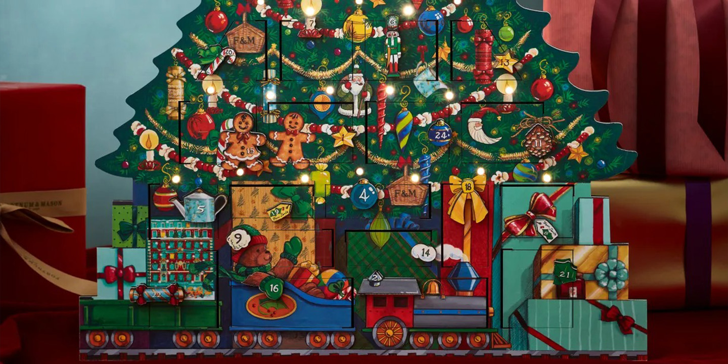 1707년에 설립된 영국의 고급 백화점 포트넘 앤 메이슨(Fortnum & Mason)의 어드벤트 캘린더 역시 다채로운 구성으로 눈길을 끈다. 우리에게 잘 알려진 홍차는 물론이고, 쿠키, 뷰티, 액세서리 등 다양한 아이템으로 채워진 캘린더를 선보이며 폭넓은 취향을 아우르고 있다. 오래된 역사를 지닌 브랜드답게 고풍스러운 패키지 디자인은 물론이고 기호에 따라 채워 넣을 수 있는 리필 팩도 별도로 판매해 직접 캘린더를 꾸미고자 하는 이들에게도 큰 인기를 얻고 있다. 피카딜리 하우스, 크리스마스트리, 동물들의 이미지를 담은 캘린더 디자인은 연말의 고유의 따스한 분위기를 느끼게 한다.