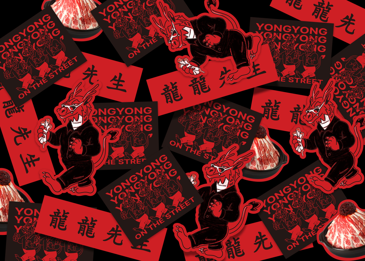 브랜드디자인실은 홍콩과 영국 문화의 결합, 한자와 영문의 조화, 브랜드 캐릭터 등을 다양한 디자인 요소로 확장했다. 앞서 소개한 세 캐릭터 중 ‘마룡’을 활용한 심벌에 한자와 영문으로 구성한 타이포그래피로 퓨전 중식이라는 이미지를 직관적으로 드러냈다. 여기에 사용한 한자 서체 ‘용용 홍콩 레귤러Yongyong Hong Kong Regular’는 자체 개발했다. 한자의 경우 획 끝을 용용이 삼형제의 수염이 연상되도록 디자인한 게 특징이다. 용용선생 브랜드디자인실은 “가독성이 다소 떨어져 보이는 한자를 브랜드의 핵심 언어로 채택한 것은 위험 부담이 있는 시도였다. 하지만 결과적으로 많은 소비자가 홍콩과 영국 문화의 퓨전이라는 브랜드 핵심 콘셉트와 키 비주얼을 직관적으로 떠올리는 데 결정적 장치로 작용했다”고 설명했다. 이는 마치 유니클로가 뉴욕 진출 당시 영문이 아닌 가타카나로 이뤄진 사이니지를 내걸었지만 소비자들이 위화감 없이 받아들였던 경우를 떠오르게 한다. 문자가 읽히는 것이 아닌 이미지로 각인될 수 있다는 사실을 증명한 셈. 용용선생은 아이덴티티를 다양한 애플리케이션에 적용했는데 유니폼, 명함, 메뉴판은 물론 메인 요리를 담는 오발 접시에도 타이포그래피를 반영하는 등 디테일을 놓치지 않았다.
