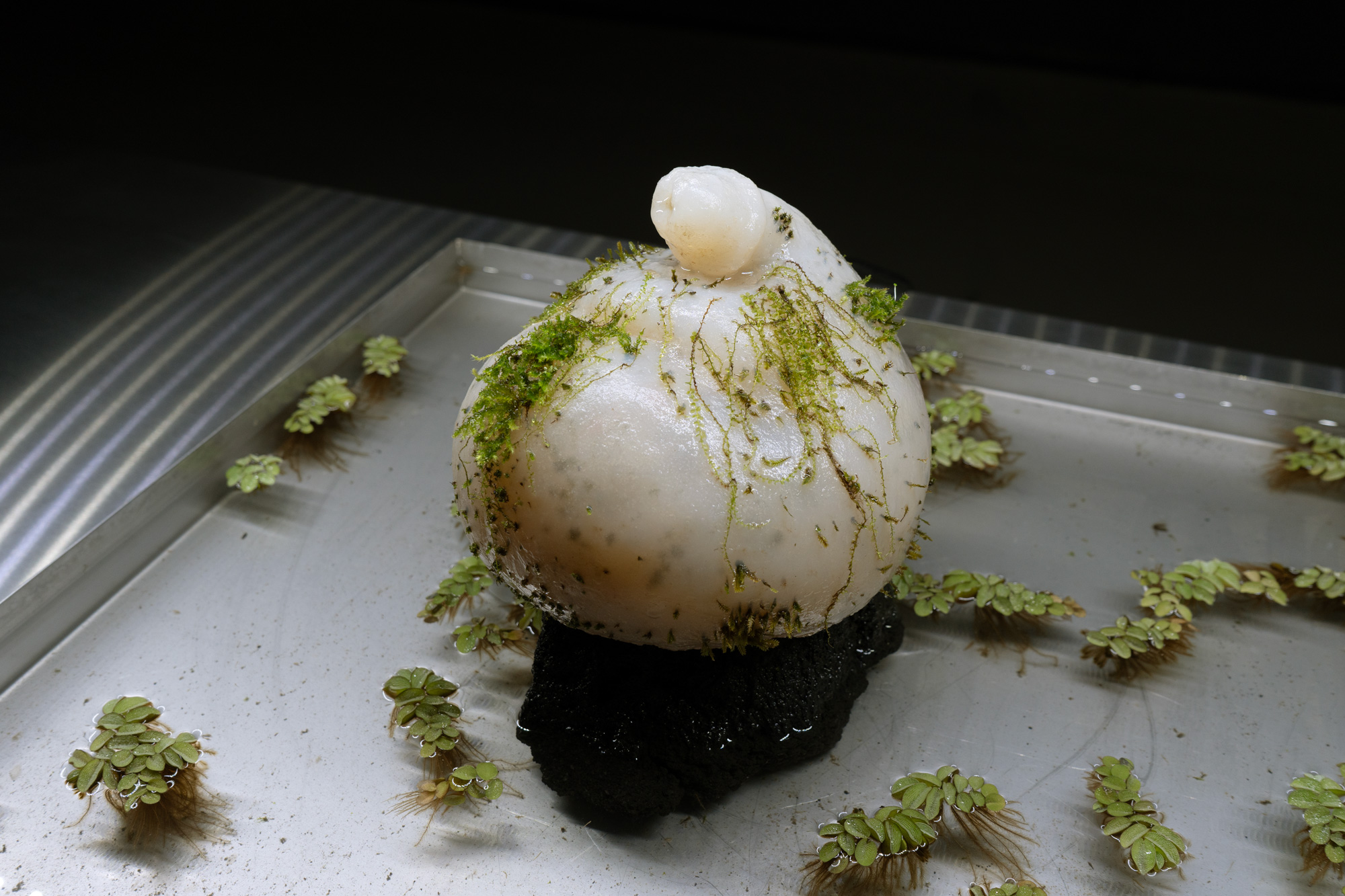 에이미가 현실을 디지털로 옮긴 존재라면, 아가몬은 반대로 디지털 세계 속 크리처를 현실로 끌어온 작품이다. 추수의 갈증 중 하나는 ‘엄마’가 되는 것이었다. 그러나 디지털 세계에 오래 머물러온 자신에게 그 욕망은 한편으로 멀게 느껴지기도 했다. 그래서 선택한 방식이 디지털 속 ‘아가몬’을 실제 세계로 데려오는 것이었다. 아가몬을 디자인하기 위해 추수는 ‘독립정원’ 스튜디오와 협업했다. 우뭇가사리와 이끼 같은 유기적 재료를 사용해 돌봄과 관리 없이는 유지될 수 없는 존재를 만들었다. 지금까지 완성한 아가몬은 총 5개. 그중 하나는 이미 죽음을 맞이했다. 적절한 관리가 이뤄지지 않으면 이끼와 우뭇가사리가 말라버리기 때문이다.