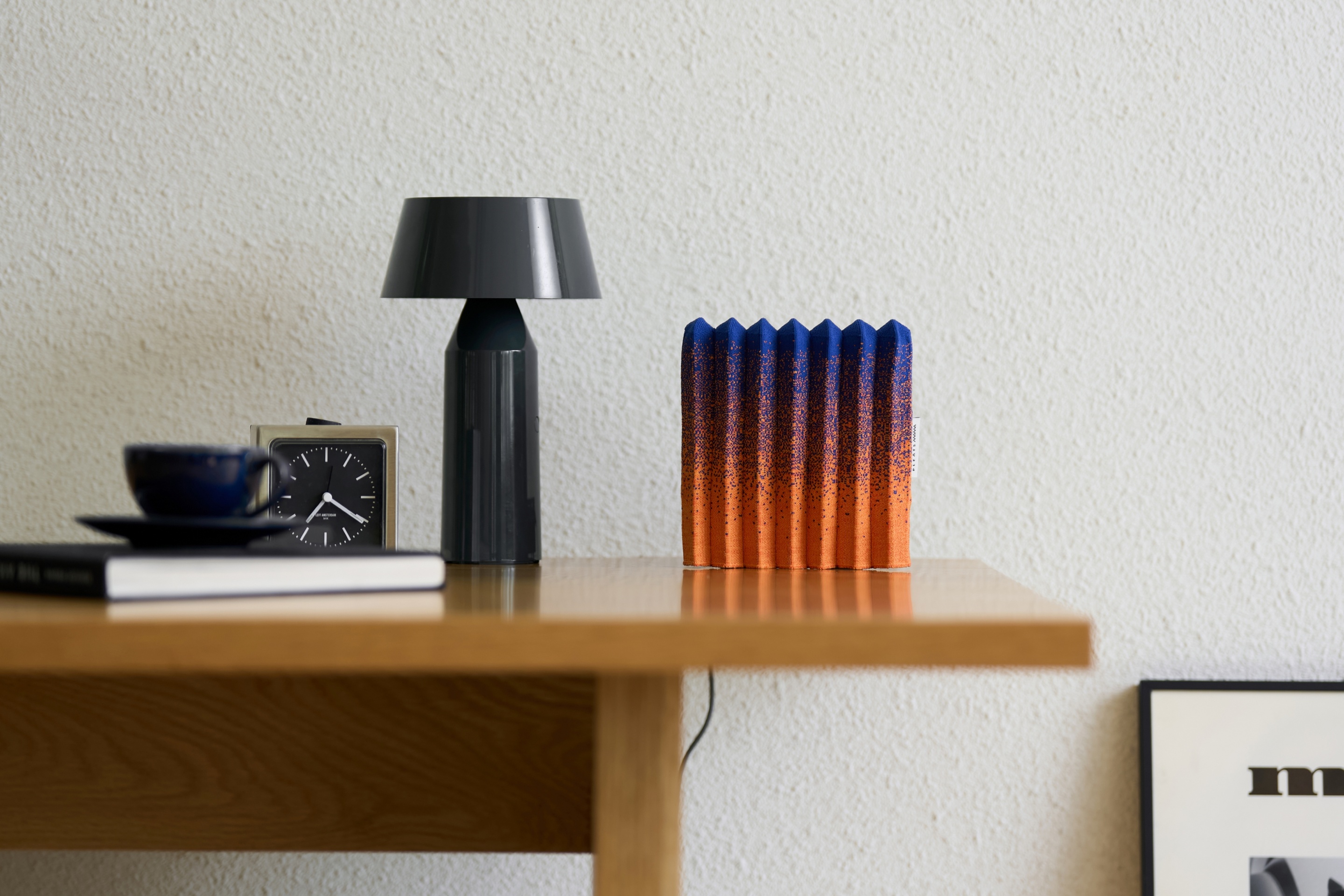 SK브로드밴드는 이 문제를 타개하고자 새로운 모델 개발에 나섰다. ‘드러내고 싶은 공유기’라는 목표를 달성하기 위해 택한 디자인 파트너는 김지윤스튜디오였다. 디자이너는 미감을 해치는 주요 원인이었던 더듬이 모양의 안테나를 와이파이 신호 강도 향상에 최적화된 각도로 고정한 뒤 심플한 정사각형 판 안에 내장했다. 기본형인 L자형 구조는 1자로 펼쳐 벽걸이 TV, 이동형 TV 등의 후면에 부착할 수도 있도록 설계했다. 고객 경험을 향상시키기 위한 세심한 디테일도 눈에 띈다. 수차례 실험을 거쳐 완성한 벤틸레이션 홀은 별도의 냉각 장치 없이 공기 흐름만으로도 발열량을 줄여준다. 또 랜선 결합 여부를 알려주는 LED 표시등은 간접 조명으로 눈부심을 방지했다. 국내 친환경 패션 브랜드 플리츠마마와의 협업은 특별함을 더한다. 플리츠마마와 공유기용 친환경 패브릭 커버를 제작했는데, 기계의 차가운 물성을 따뜻한 니트 소재로 보완한 것이다. 재활용 페트병으로 만든 원단에 기하학적 도형 패턴과 그레이디언트 컬러를 더해 공유기를 감각적인 오브제로 거듭나게 하는 데 일조한다.
