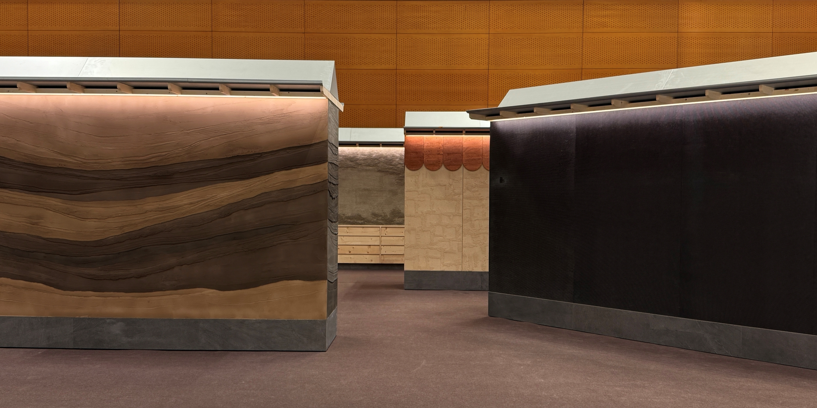 가구를 중심으로 다양한 크리에이티브 프로젝트를 전개하는 라이프스타일 브랜드 위키노(WEKINO). 정제된 소재, 절제된 디자인과 컬러로 현대적인 삶에 온기를 더하는 브랜드다. 이번 전시에서 거친 결이 그대로 드러나는 합판 벽면으로 부스를 구성했다. 날것의 배경 위에 부드러운 곡선의 소파와 선명한 컬러의 패브릭이 놓이니, 제품의 형태와 색감이 한층 또렷하게 살아난다.