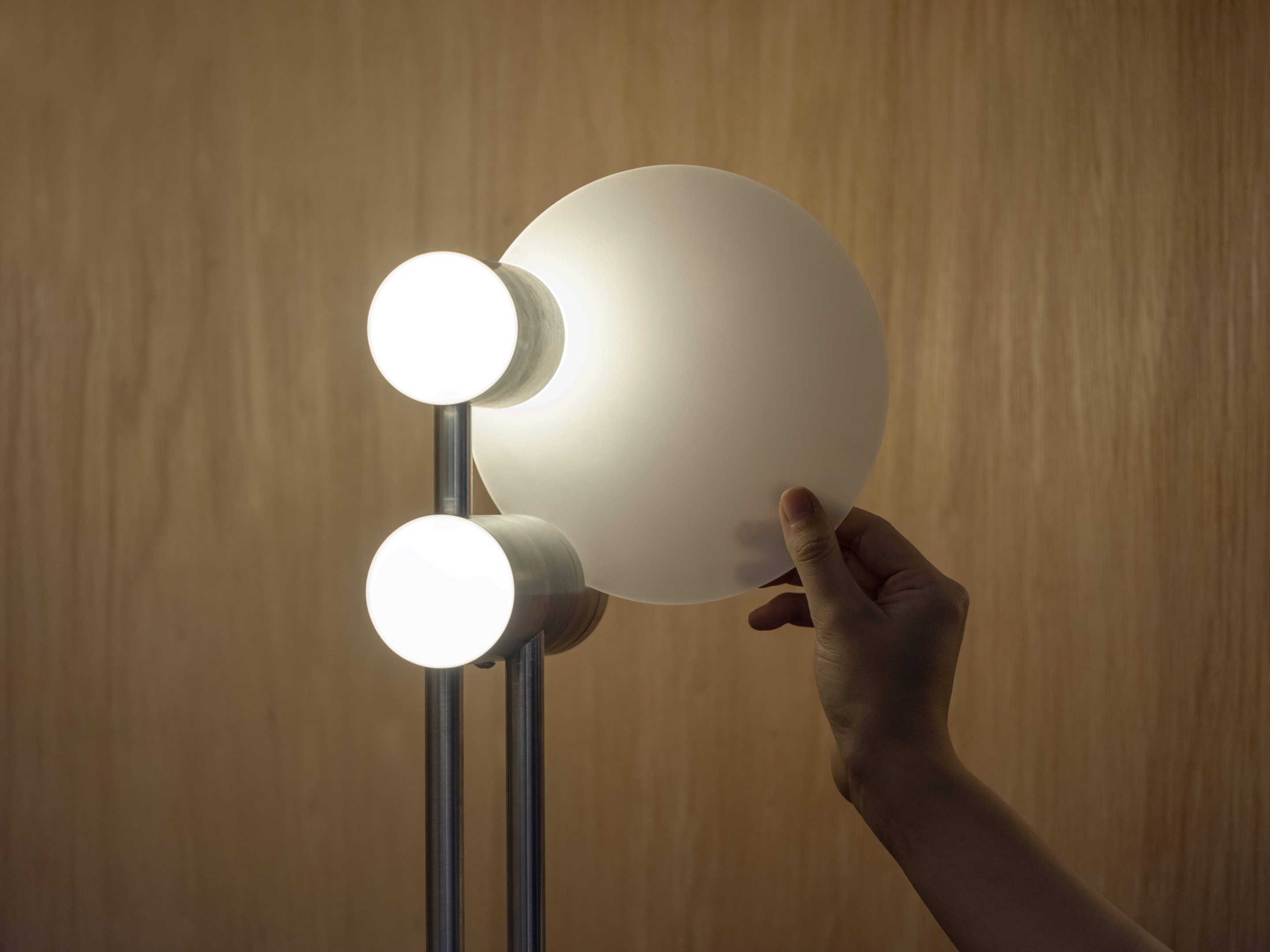 공간의 분위기나 조명이 놓일 위치나 방향을 고려해 원을 조합하고 설정할 수 있도록 했으며, 하나 이상의 조명을 두어 각각의 각도를 설정하면 다양한 조명 연출이 가능하다. 절제된 형태 속에서 은은하게 퍼지고 모이는 빛을 느낄 수 있다.