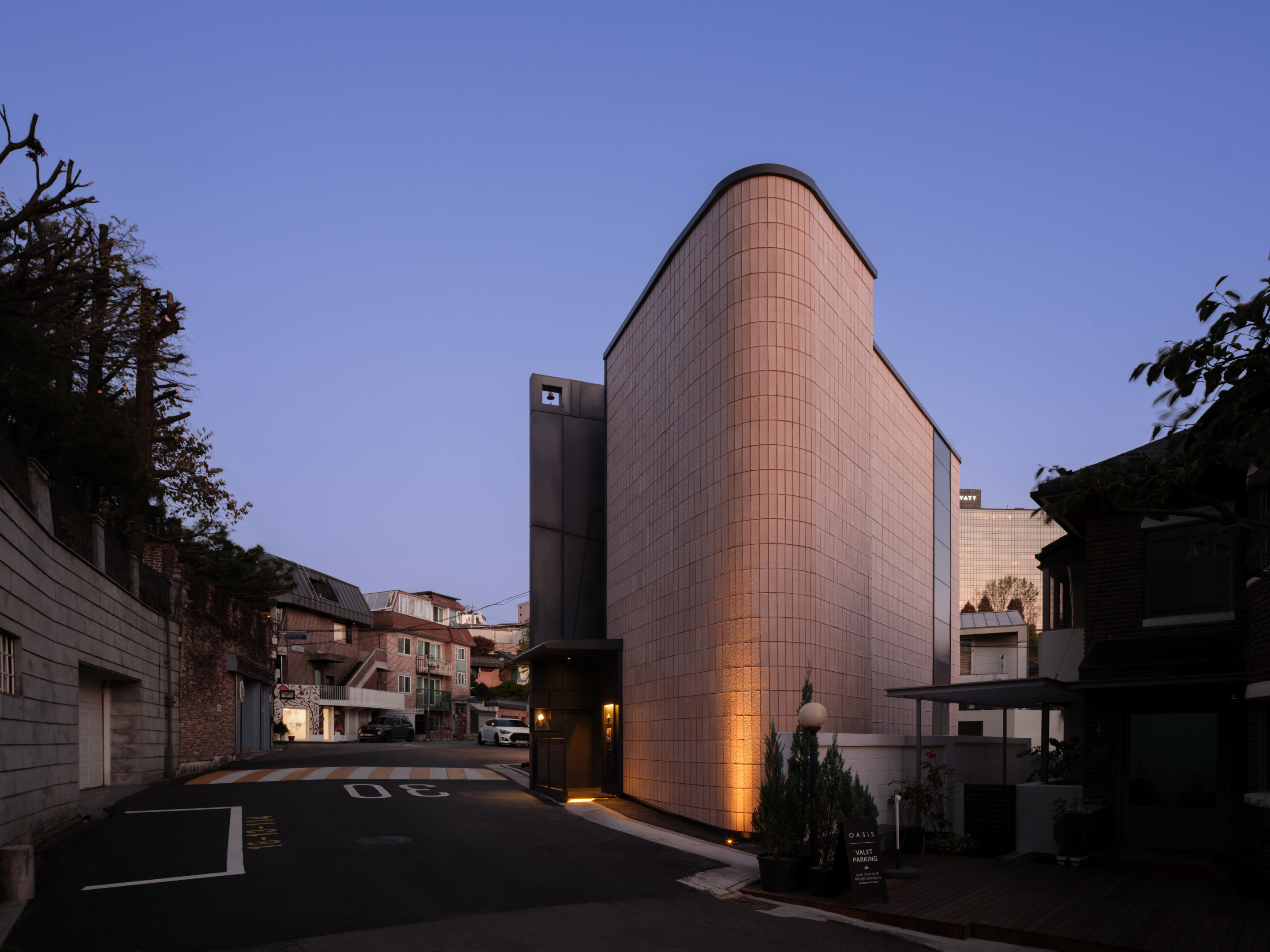건축주와 건축가 사이에서 가장 중요한 것은 다름 아닌 신뢰다. 가용 예산이나 공사 기간은 차치하고 서로의 입장을 존중하는 관계가 형성될 때 비로소 고유성과 진정성이 깃든 건축물을 구축할 수 있다. 오월의 종은 건축주의 생각을 글과 그림으로 표현한 한 권의 노트에서 시작한 프로젝트다. 멋진 작업 의뢰서를 받은 오온 건축사무소 김종유 대표는 빵을 굽고 발효시키는 과정을 시간이 흐를수록 깊어지는 건축물에 은유했다. 흔적이 쌓이면서 깊이감을 더하는 구로 철판을 주재료로, 건물 내외부에 거칠고 검박한 질감을 적극적으로 드러냈다. 가장 눈에 띄는 요소는 밀가루 반죽처럼 타일에 손맛을 더한 외장재. 시간과 계절에 따라 표면의 질감이 달리 보이는 건물 외관 상단에는 건축주가 오랜 시간 갖고 있던 주물 종을 고정해 멀리서도 한눈에 빵집을 찾을 수 있다. 건물은 빵을 반죽하고 숙성하는 지하 1층, 빵을 굽고 판매하는 1층, 직원들을 위한 공간인 2층으로 구성했으며, 지하부터 옥상까지 관통하는 작은 중정을 두어 모든 층에서 자연을 누릴 수 있도록 했다.