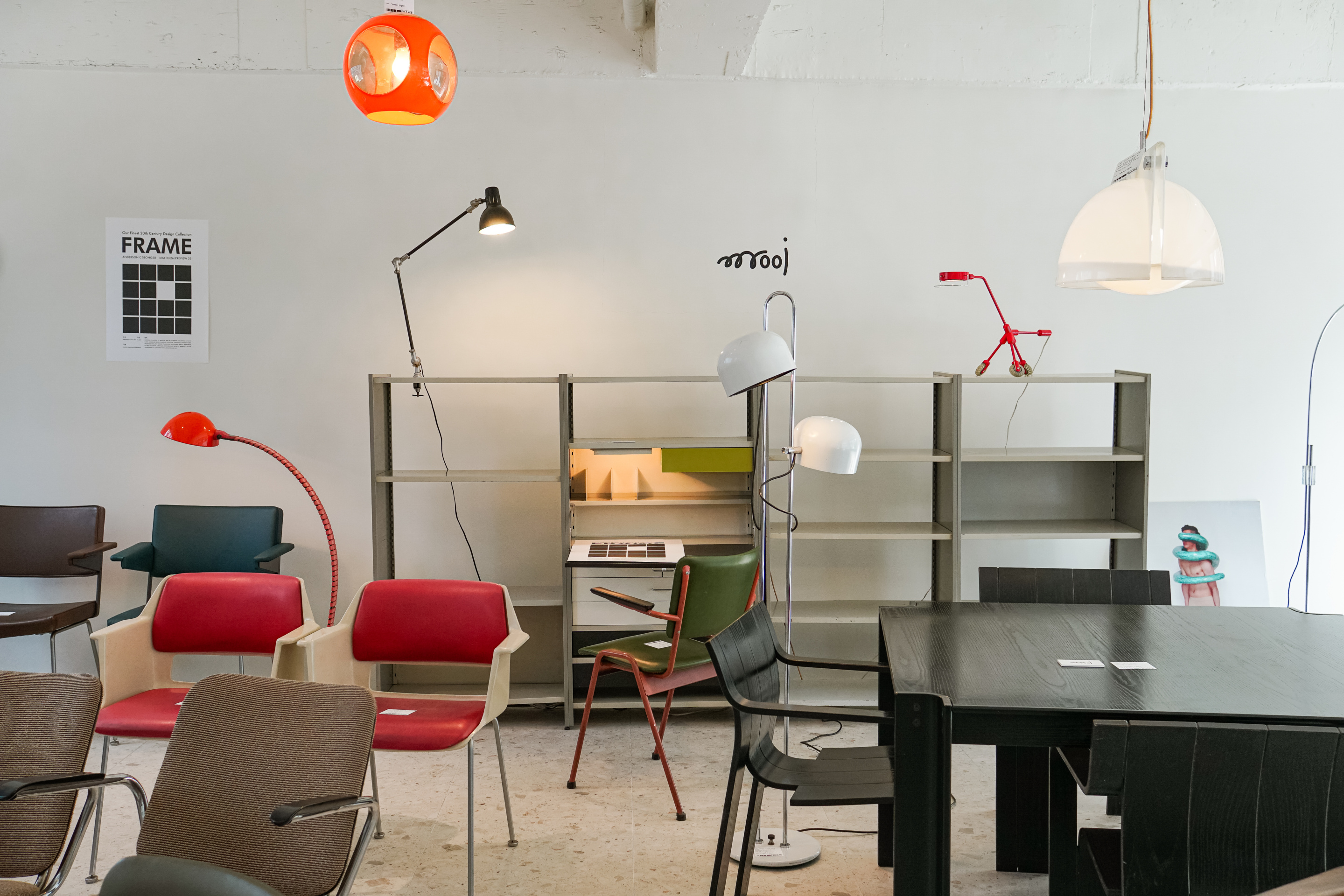 다양하고 파편화된 취향의 시대, 나만의 선호를 반영한 소비 형태는 디자인 가구 시장에서도 엿볼 수 있는 흐름이다. 유행에 따라 혹은 입문자용 가구라는 타이틀에 따라 구입하는 것이 아니라 디자인 사조나 영국, 프랑스, 네덜란드, 독일, 미국 등 국가별 특징을 파악하고 따라가며 나만의 컬렉션을 꾸려 나가는 것. 이러한 추세에 발맞춰 디자인 가구는 물론, 리빙 문화의 다양성을 더해줄 전시가 지난 주말 성수동에서 열렸다. 가구를 위주로 한 공간 스타일링과 오리지널 빈티지부터 리프로덕션 새 상품 및 중고 상품 등 국내 최대 규모로 디자인 가구를 다루는 앤더슨씨 갤러리(이하 앤더슨씨)가 주최한 〈FRAME〉 전시. 가구를 좋아한다면 더더욱 놓치면 안 될, “가구의, 가구에 의한, 가구를 위한” 가구 중심의 전시였다.