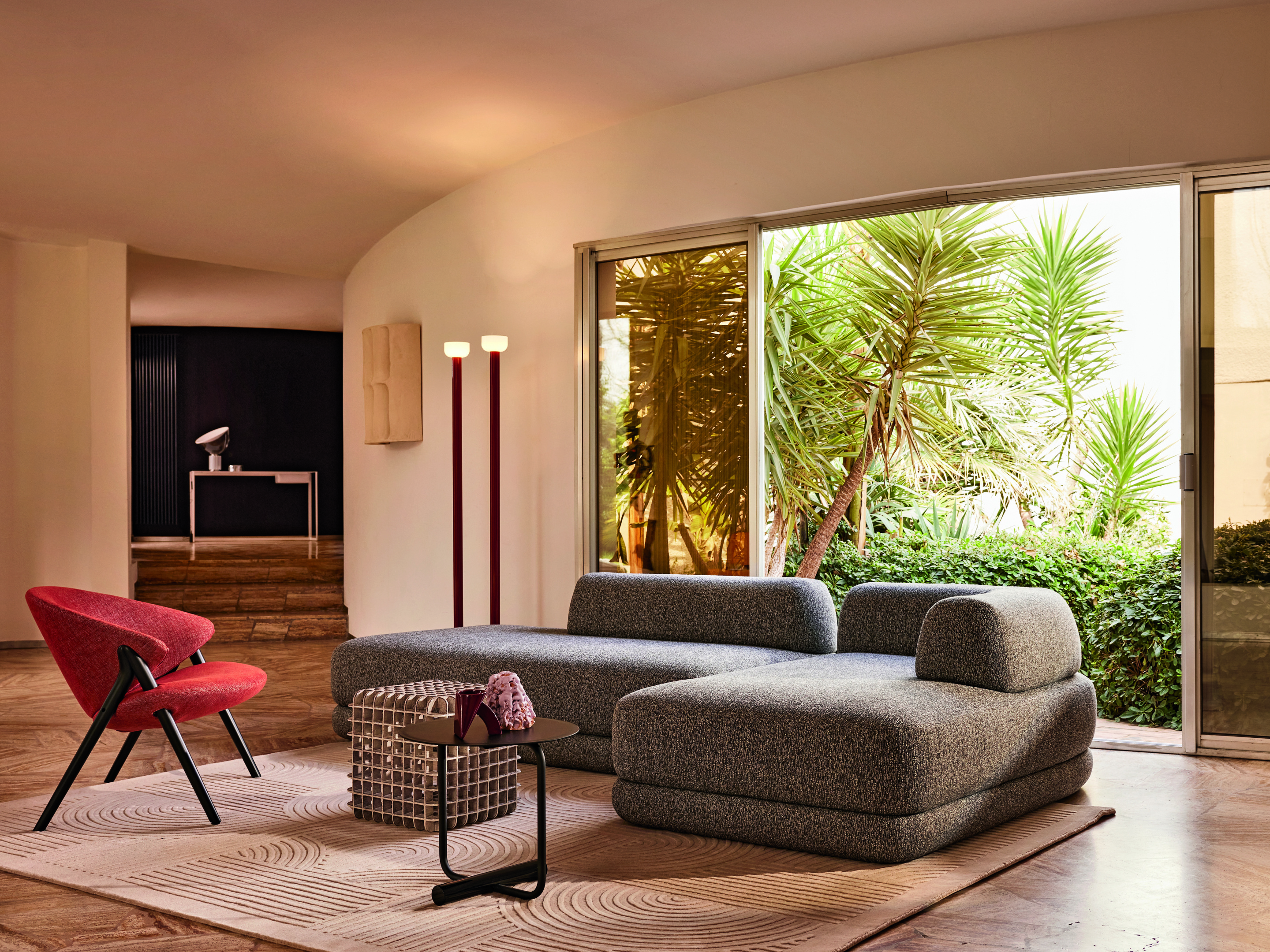 밀라노에 있는 자노타 플래그십 스토어.재생 가능한 폴리에스테르 소재로 커버를 만든 소형 암체어 ‘주노Giuno’.카를로 몰리노를 오마주한 소파 ‘아르데아 Ardea’.밀라노 디자인 위크에서 선보인 자노타의 ‘자자 베드Zaza Bed’.