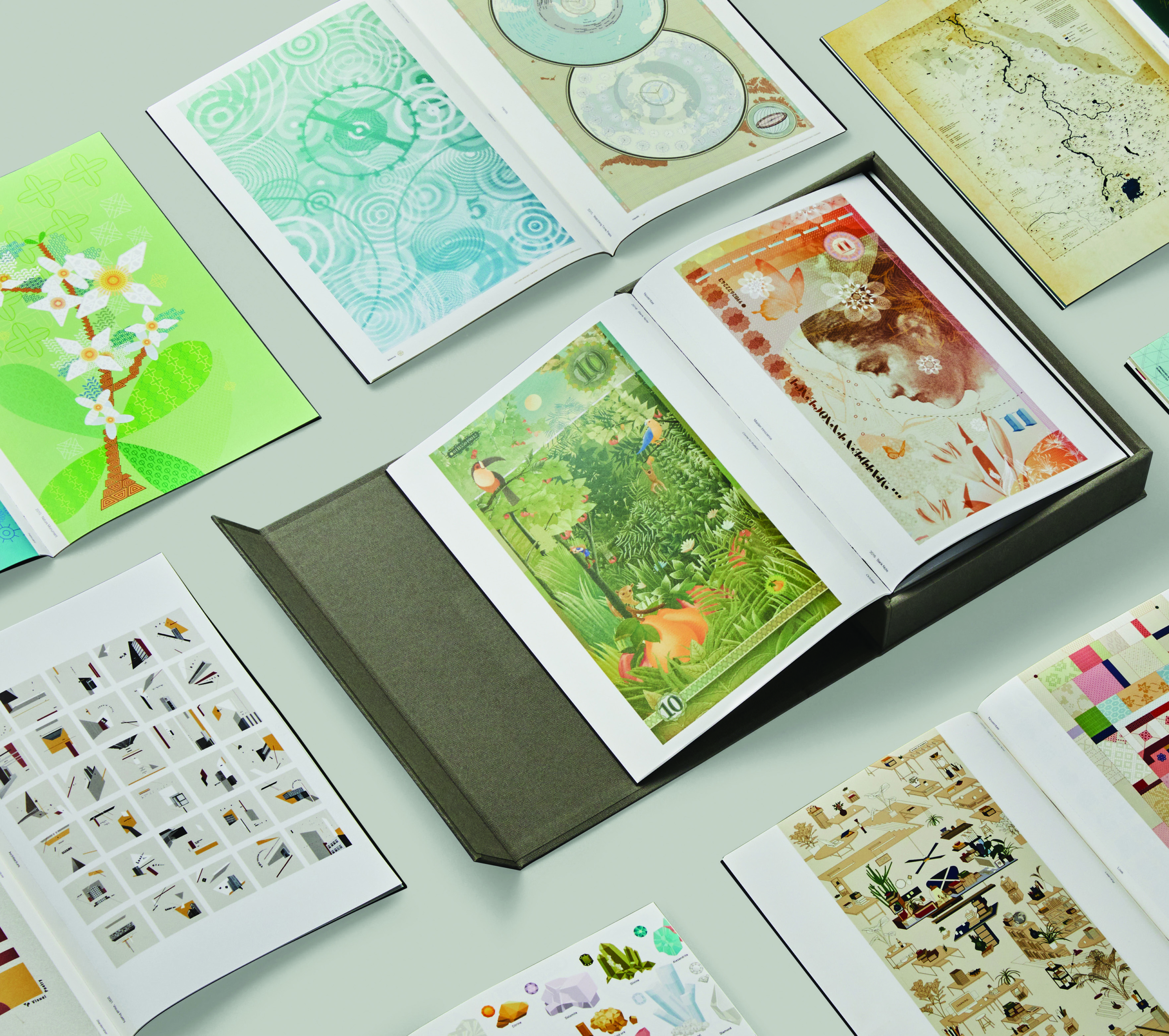 (우) 화폐 디자인을 주제로 작업한 2016년 캘린더 그래픽.