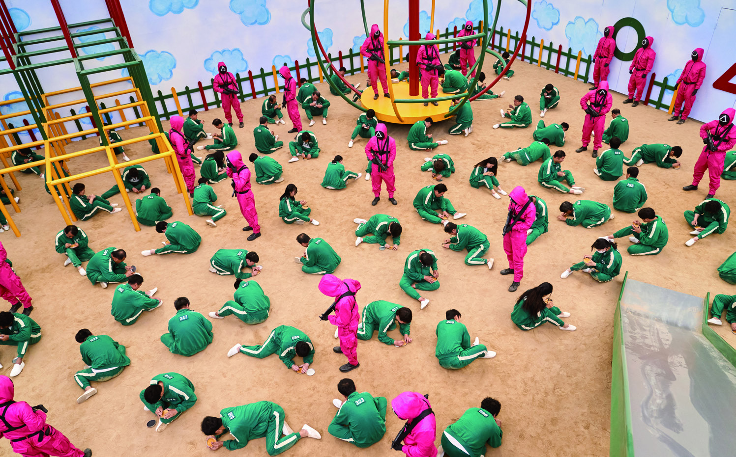 어린 시절 추억의 놀이가 잔인한 경쟁 구도 속에서 목숨을 건 게임으로 연결되는 설정으로 출발한 이 드라마는 채경선 프로덕션 디자이너의 손에서 탄생한 세트와 이미지를 통해 가장 강력하고도 특별한 미장센을 전 세계에 각인시켰다.