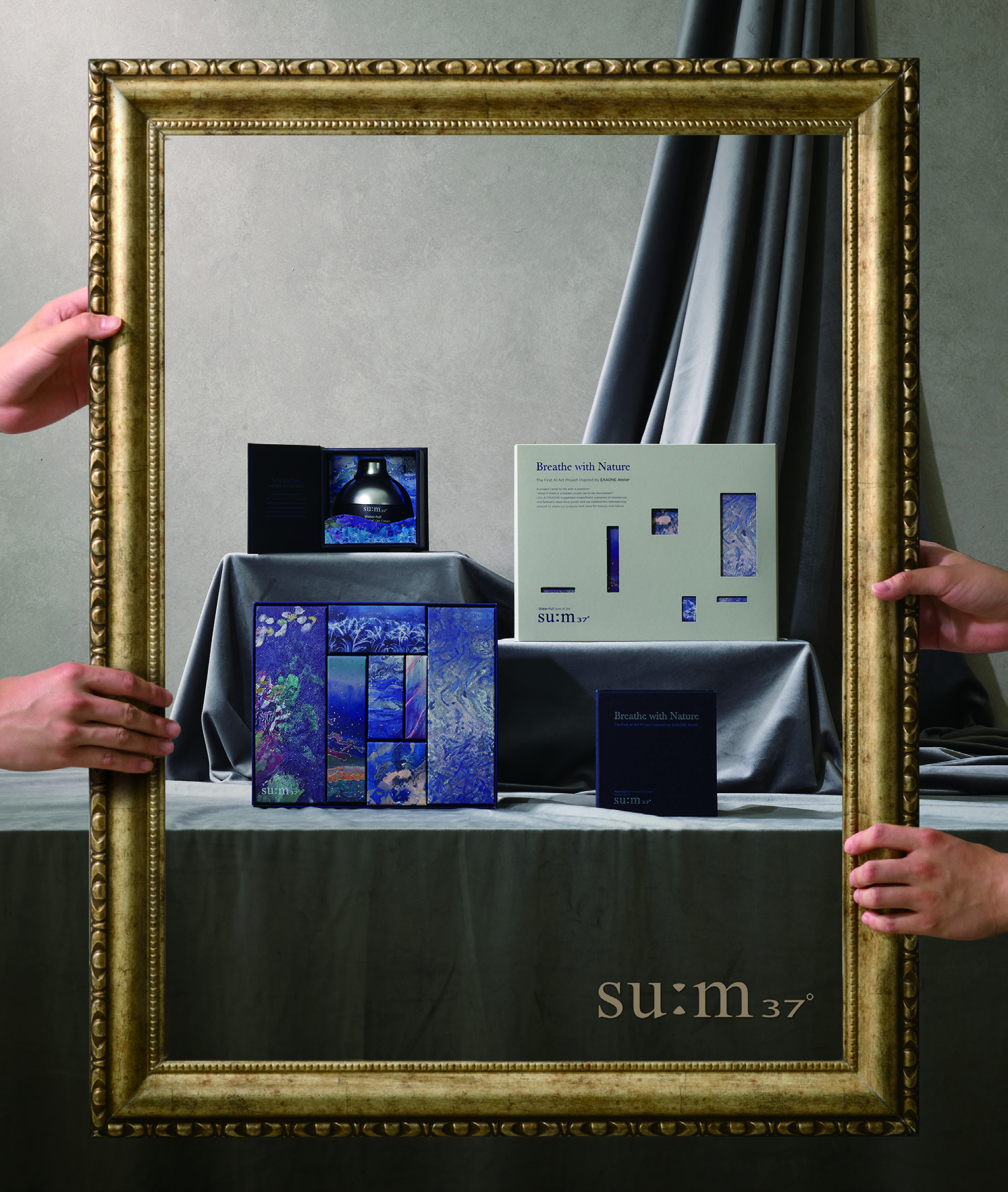 AI는 입력어를 넣을 때마다 수십, 수백 장의 아트워크를 만들어낸다. 다양한 아트워크 중에서 숨37 ‘워터-풀’ 라인의 콘셉트 및 색감과 가장 어울리는 이미지를 선별하고 그중에서도 사람이 만들어내기 어려워 보이는 이미지를 선정했다. AI가 생성하는 이미지는 평면이고 패키지는 입체로 만들기 때문에 패키지를 제작했을 때 시각적으로 가장 보기 좋은 형태로 재구성했다.