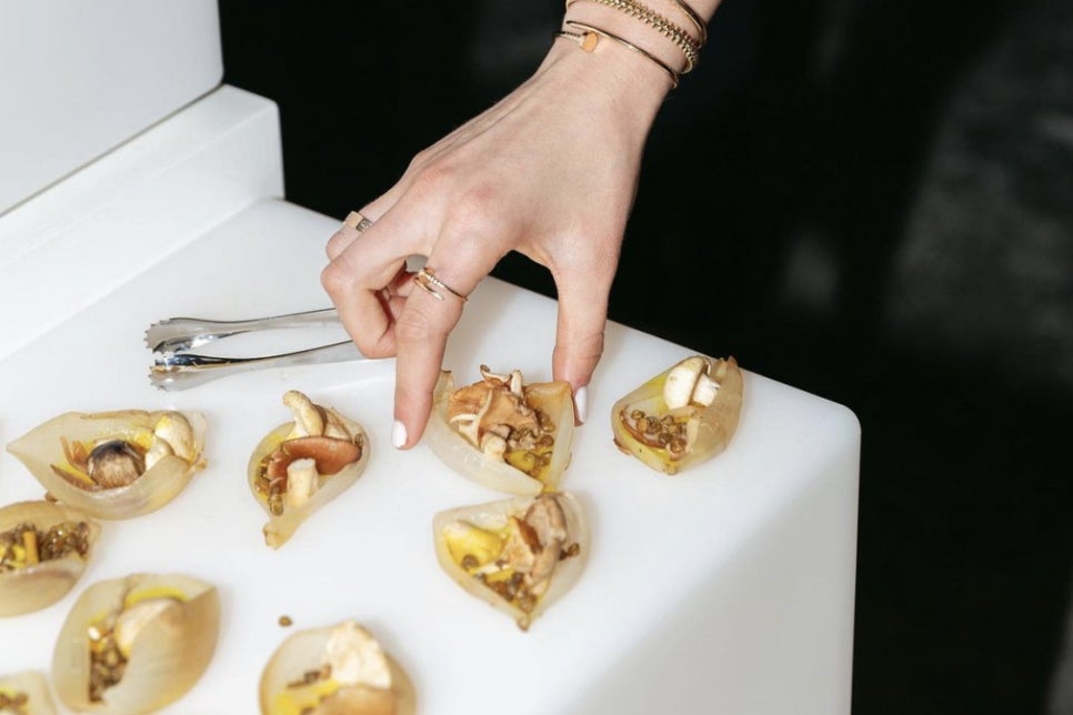 LA와 멕시코시티를 기점으로 활동하는 푸드 디자인 스튜디오 아나나스아나나스AnanasAnanas의 케이터링을 보면 이런 질문을 하게 된다. 버섯으로 만든 스탠드 조명, 천장에 실로 매달린 빵과 채소, 산처럼 쌓인 소금 위에 놓인 채소 등. 음식보다는 예술품처럼 보이기 때문이다.