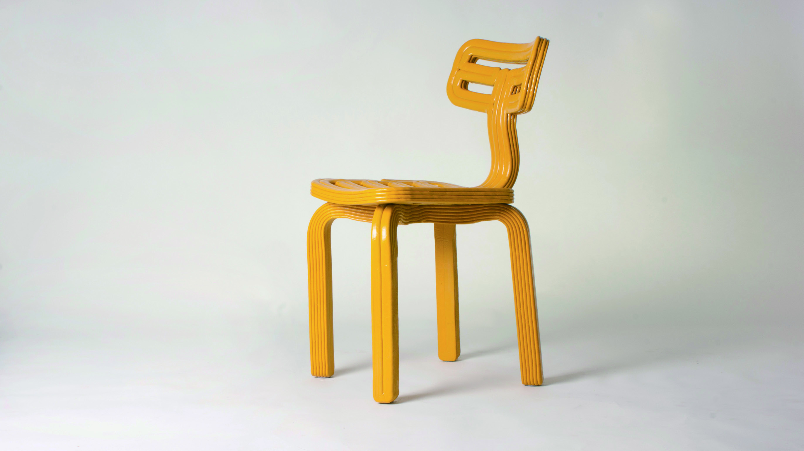 끝없이 흐름이 느린 의자(Endless flow low chair natural)는 끝없이 패턴처럼 이어지는 레이어의 연속이 아름다운 공예품과 공산품의 특성을 모두 담고 있다.
