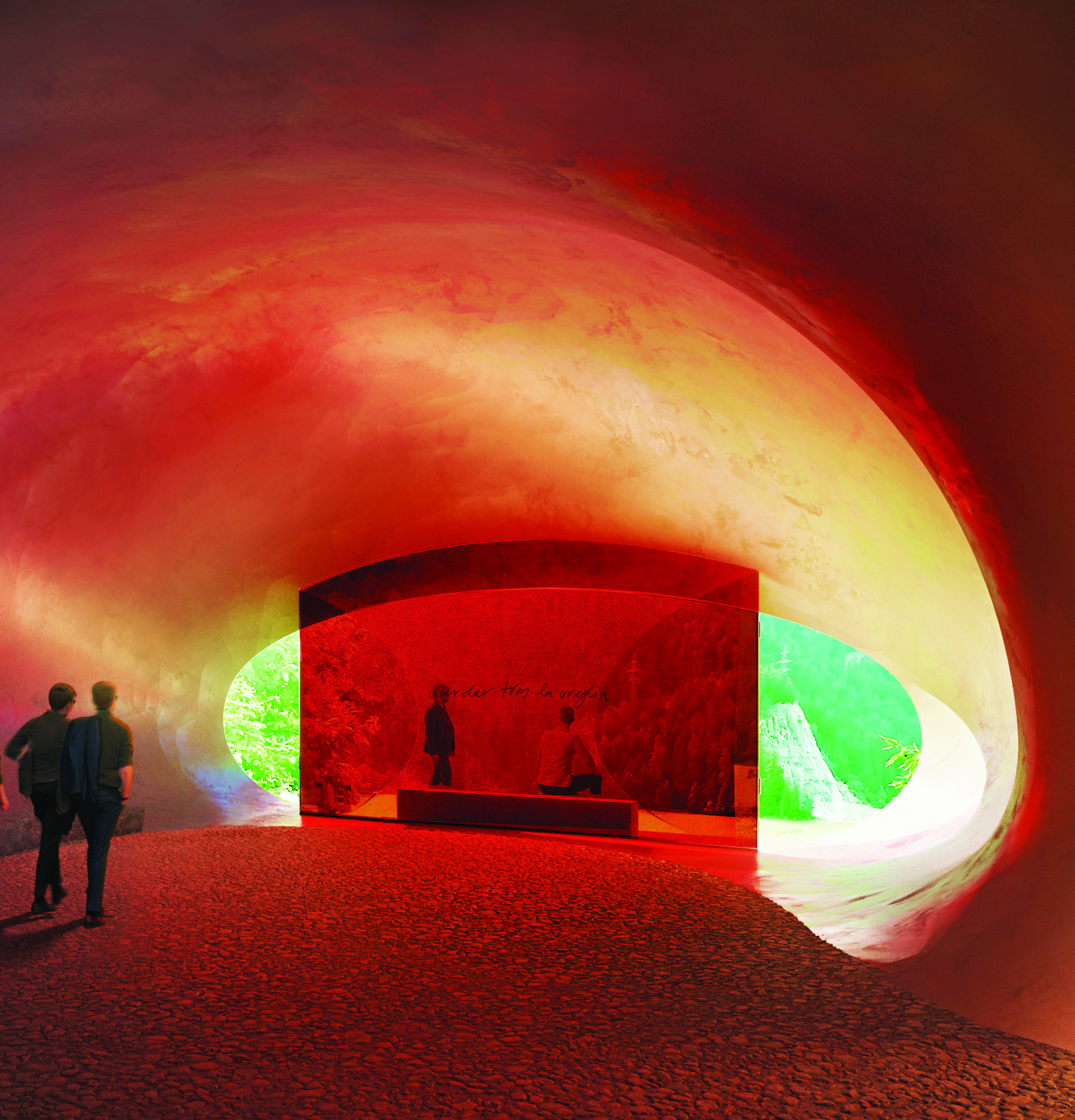 건축가 헤르조그 & 드 뫼롱 Herzog & de Meuron이 설계한 ‘고속도로 교회Autobahnkirche’가 스위스 남부 안데르시Andeer 외곽에 위치한 A13 고속도로에 세워진다. 하얗고 각진 덩어리 같은 이 건축물이 완성되면 최초의 고속도로 교회가 된다. 헤르조그 & 드 뫼롱은 교회라는 전통적인 장소에 도전하고자 종교적 표식이나 상징적인 요소를 없앤 설계안을 내놓았다. 특히 고속도로 주변 자연경관은 시간이 멈춘 듯 평화롭고 고요한데, 이 교회는 그 풍경의 일부가 되는 것이 특징이다. 문을 열고 입장한 방문객은 사람의 귀처럼 생긴 여러 공간을 통과하게 되는데, 안쪽 깊숙이 들어갈수록 고속도로의 소음이 약해지고 발자국 소리가 강해진다. 마지막 방에 다다르면 강한 일광과 함께 마을의 아름다운 전경이 펼쳐지고, 붉은 착색 유리를 통해 아름다운 저녁 노을을 감상할 수 있다. 촛불과 매트, 반사 벽과 단일 채광 창으로 이루어진 공간은 가장 사적인 장소로, 여기서 방문객들은 자신과 대면하는 종교적 경험을 하게 된다.