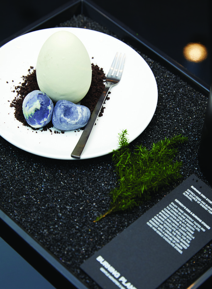 2019년 베이징에 문을 연 럭셔리 백화점 SKP-S의 공간 총괄 디렉팅을 젠틀몬스터가 맡게 되면서 우리가 예상했던 것보다 이르게 F&B 리테일 숍이 입점할 수 있는 기회를 얻었다. 누데이크 베이징점을 ‘화성’이라는 SKP-S의 전체 콘셉트에 맞춰 연출했다면, 하우스 도산에 문을 연 누데이크의 국내 첫 플래그십 스토어는 제품과 브랜드 아이덴티티에 좀 더 초점을 맞춘 공간이다. 하우스 도산은 누데이크뿐만 아니라 젠틀몬스터와 탬버린즈 매장이 함께 입점해 젠틀몬스터가 그려온 새로운 리테일 숍의 방향성을 보여주는 곳이다. 지하 1층에 위치한 누데이크 매장의 테마는 ‘테이스트 오브 메디테이션Taste of Meditation(명상의 맛)’이다. 오롯이 디저트에 집중할 수 있는 공간을 만들고자 했다.