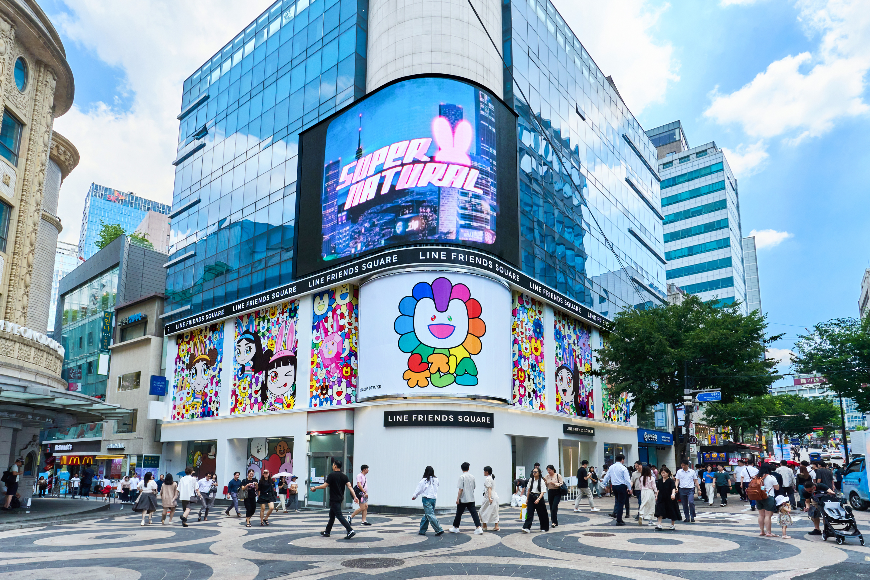 평소 뉴진스의 팬임을 자처한 무라카미 다카시는 특유의 캐릭터 디자인으로 일본 데뷔 싱글에 수록된 ‘Right Now’의 뮤직비디오와 굿즈, 앨범 커버 아트 작업 등에 참여했다. 일본의 서브컬처를 활용해 귀여움과 그로테스크함이 공존하는 실험적인 작품을 만들면서도, 상업적으로는 글로벌 브랜드와의 협업 컬렉션을 꾸준히 선보이는 팝 아티스트로서의 면모가 드러난다. 예술가와 아이돌 그룹이라는 타이틀을 놓고 보면 그다지 접점이 없어 보이지만 사실 이 둘은 ‘브랜드’라는 이름 아래 수렴된다. 이번 협업은 한마디로 브랜드와 브랜드의 만남이라고 볼 수 있는 것이다. 프로젝트는 공개 직후 큰 화제를 불러모았다. 애니메이션과 실사 촬영을 결합한 뮤직비디오에서 파워퍼프걸 x 뉴진스 캐릭터들이 무지개색의 거대한 꽃을 만나자 무라카미 다카시가 디자인한 새로운 캐릭터가 등장하는데, 각 멤버들의 특징을 절묘하게 표현해 팬들로부터 큰 호응을 얻었다.