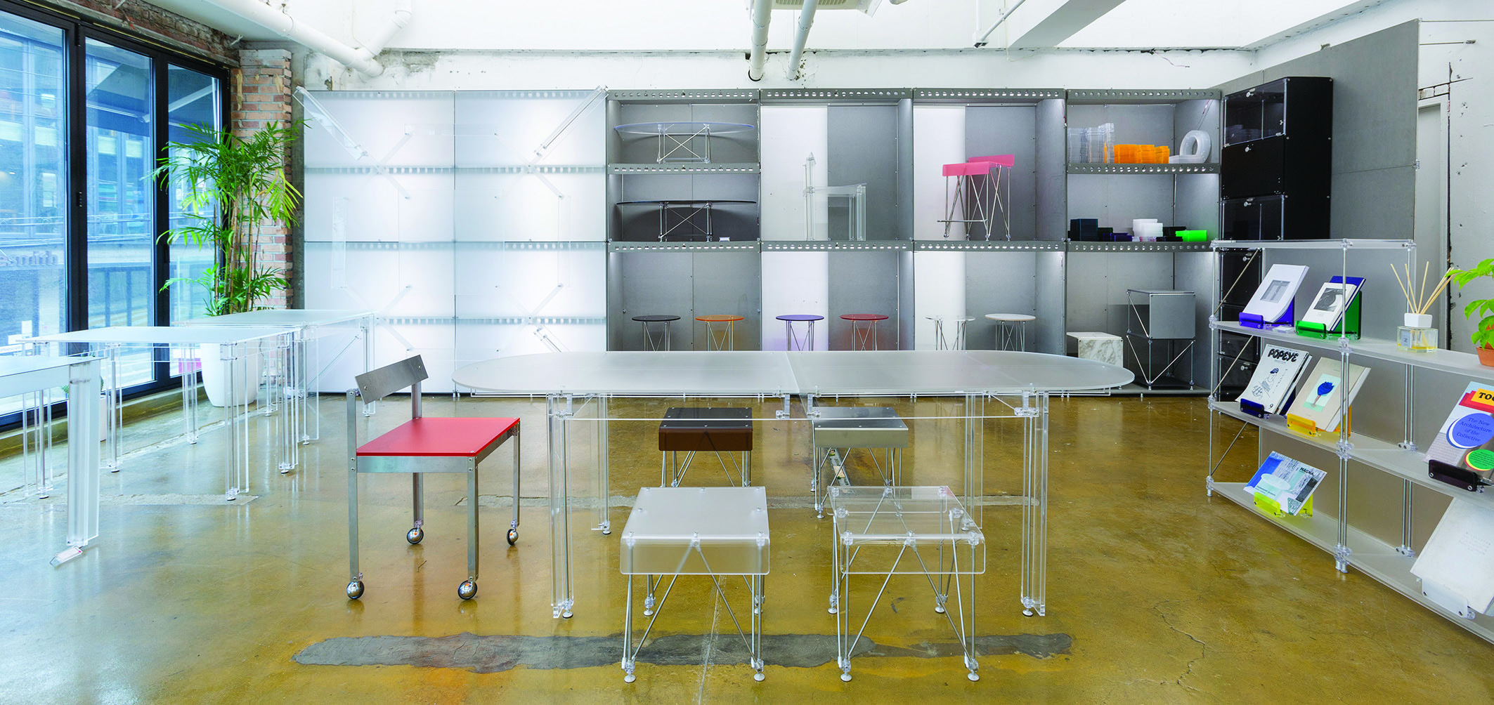빌드웰러는 모듈 가구를 기반으로 공간 솔루션을 제안한다. 가구는 물론 공간까지도 소모품처럼 다루는 지금의 경향을 탈피하기 위한 고민이 브랜드를 만들게 된 계기다. 이들이 내놓은 해답은 가로 600cm, 세로 1200cm의 아크릴 판을 기반으로 접착이나 용접 없이 몇 가지 부품만으로 ‘체결’해서 내구성 있게 완성한 모듈 가구다. 직접 디자인한 볼트와 너트, 건축에서 사용되는 트러스 구조가 핵심으로, 이는 곧 빌드웰러의 시그너처가 됐다. 철칙은 ‘최적화’다. 불필요한 요소나 과도하게 설계된 부분은 없는지, 가장 효율적인 구조가 맞는지가 관건이다. 군더더기 없는 빌드웰러의 디자인은 이렇게 만들어진다.