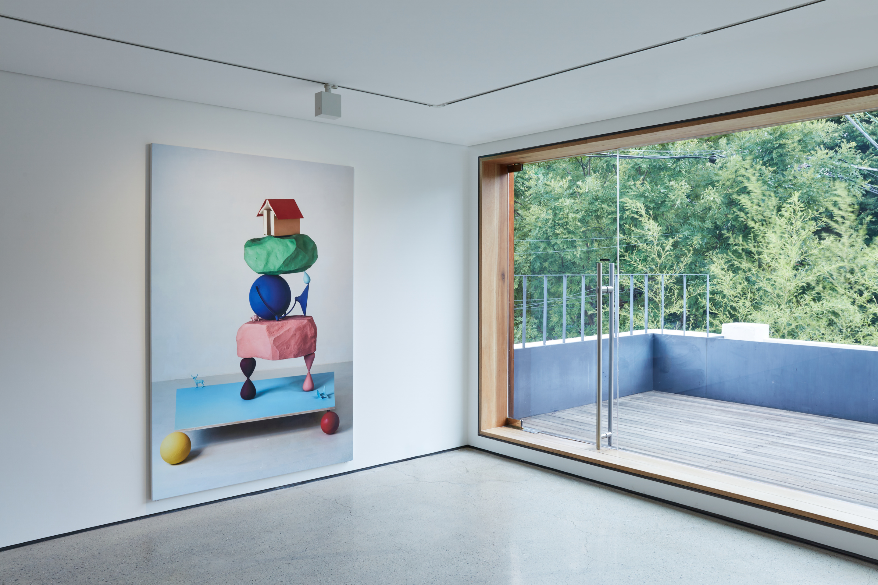 ‘그림 같은 사진’, ‘사진 같은 그림’. 두 매체가 서로를 흠모하는 듯한 말은 유현미 작가가 매체를 넘나들며 작업을 하게 된 계기가 되었다. 서울대학교 조소과를 졸업한 작가는 자신의 전공을 살려 그림, 사진에 조각이라는 매체를 더했다. 세 가지 매체를 오가며 한 작품이 완성되는데 먼저 여러 형상의 오브제를 만든다. 이를 무대미술처럼 쌓아 올려 조각을 만들고, 이를 설치한 공간에 채색을 더해 빛과 그림자를 부여한다. 입체감이 생기는 것이다. 이렇게 구축된 공간을 작가는 사진으로 담아낸다. 캔버스 위에 사진을 프린트하고서 다시 유화 물감을 그 위에 더해 칠한다. 이처럼 복합적인 메커니즘을 작동한 뒤에야 비로소 한 작품이 완성된다. 특히 이번 전시에서 작가는 <십장생> 연작의 신작 15점과 함께 작품에 담긴 조각을 공간에 함께 설치했다. 작품 속에 숨겨진 제작 과정의 일부를 드러낸 것. 그간 작가만이 알 수 있던 조각, 설치, 사진, 회화를 오가는 특유의 제작 방식을 관객이 더 깊게 이해할 수 있도록 유도한다.