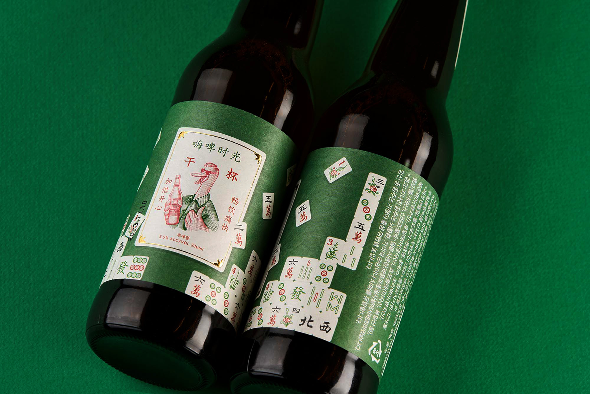 덕후선생에서 판매하는 맥주 ‘덕후선생 후에일’의 패키지에 브랜드 이미지가 잘 담겨있다. 무엇보다도 지역성을 뚜렷하게 강조하기 위해 ‘마작’을 콘셉트로 두었다. 라벨 중심에는 덕후선생의 마스코트인 오리를 마작 패 안에 그려 넣고, 마치 게임이 플레이되는 것처럼 딥그린을 활용해 마작 보드를 이미지화하여 디자인했다. 라벨에는 ‘嗨啤时光 干杯(해비시광 건배), 맥주타임 건배’와 ‘畅饮痛快/加倍开心(창음통쾌/가배견심), 즐거움이 두 배! 마음껏 신나게 마시자’란 의미를 클래식한 폰트의 한자로 새겨 넣어 덕후선생 후에일이 전하고자 하는 메시지를 강조했다.