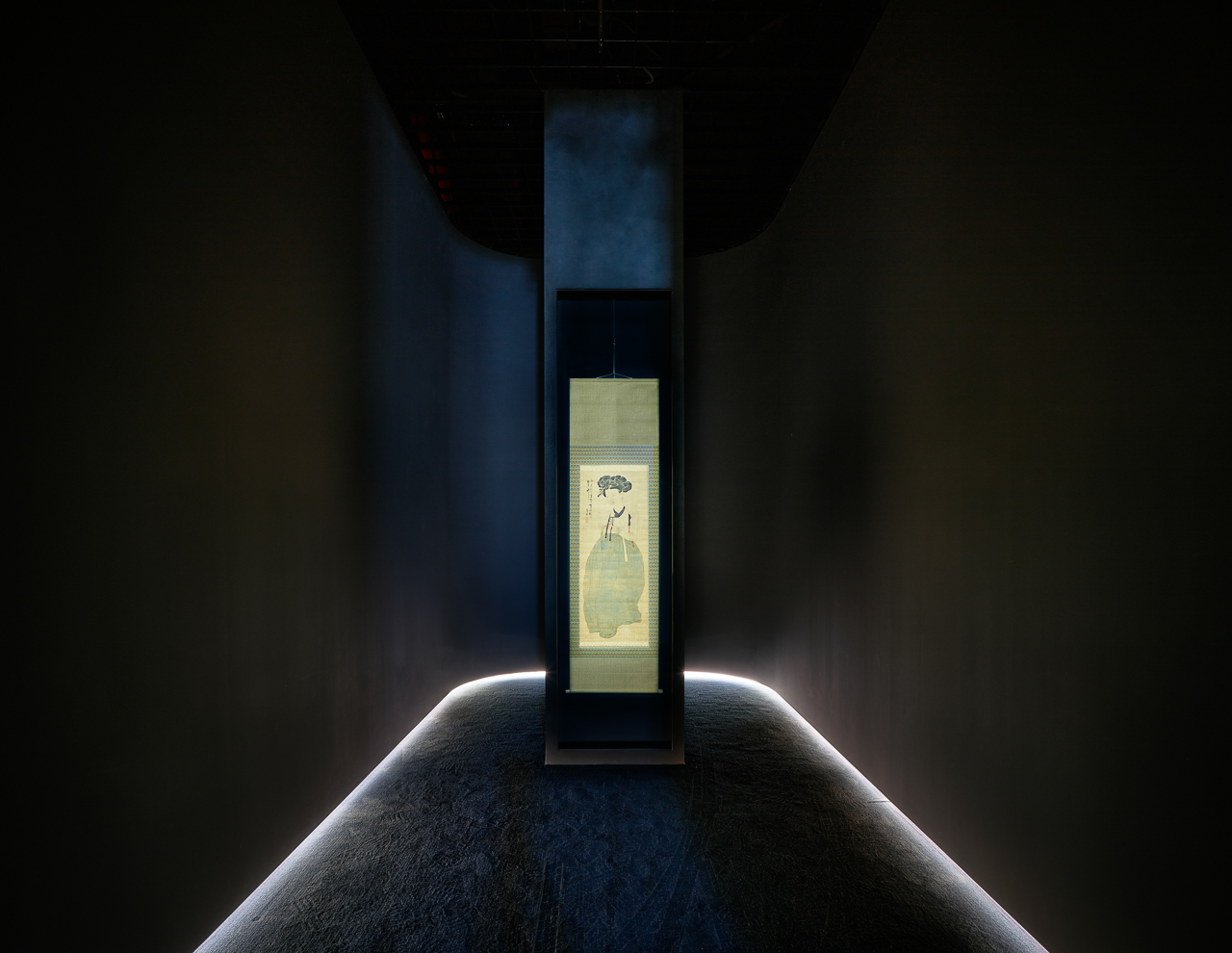 지하 1층으로 이어진 전시에서 가장 먼저 시선을 압도하는 것은 추사 김정희의 글씨와 그림이다. 삼국시대부터 조선시대에 걸친 불교미술과 도자기, 서예 작품을 만나는 전시실 4 초입에는 〈난맹첩〉(보물)의 묵란화 네 점과 추사체의 정수를 보여주는 서예 작품들이 전시되어 있다. 이어서 유려한 곡선의 아름다움을 보여주는 ‘청자상감운학문매병’(국보), ‘백자청화철채동채초충난국문병’(국보), ‘청자상감연지원앙문정병’(국보)과 함께 다양한 도자들을 향연이 펼쳐진다. 전시실 5에서는 실감 영상 전시 〈흐름·The Flow〉가 진행된다. 간송미술관의 다양한 소장품을 디지털 영상으로 재해석해 선보이는 공간으로, 정선, 김홍도, 신윤복, 이인문 등 조선 대표 화가들의 작품 하루의 시간으로 담아 약 38m의 반원형 스크린에 펼쳤다. 가구 디자이너 하지훈의 작품 ‘자리(Jari)’에 앉아 그 흐름에 몰입해보자.