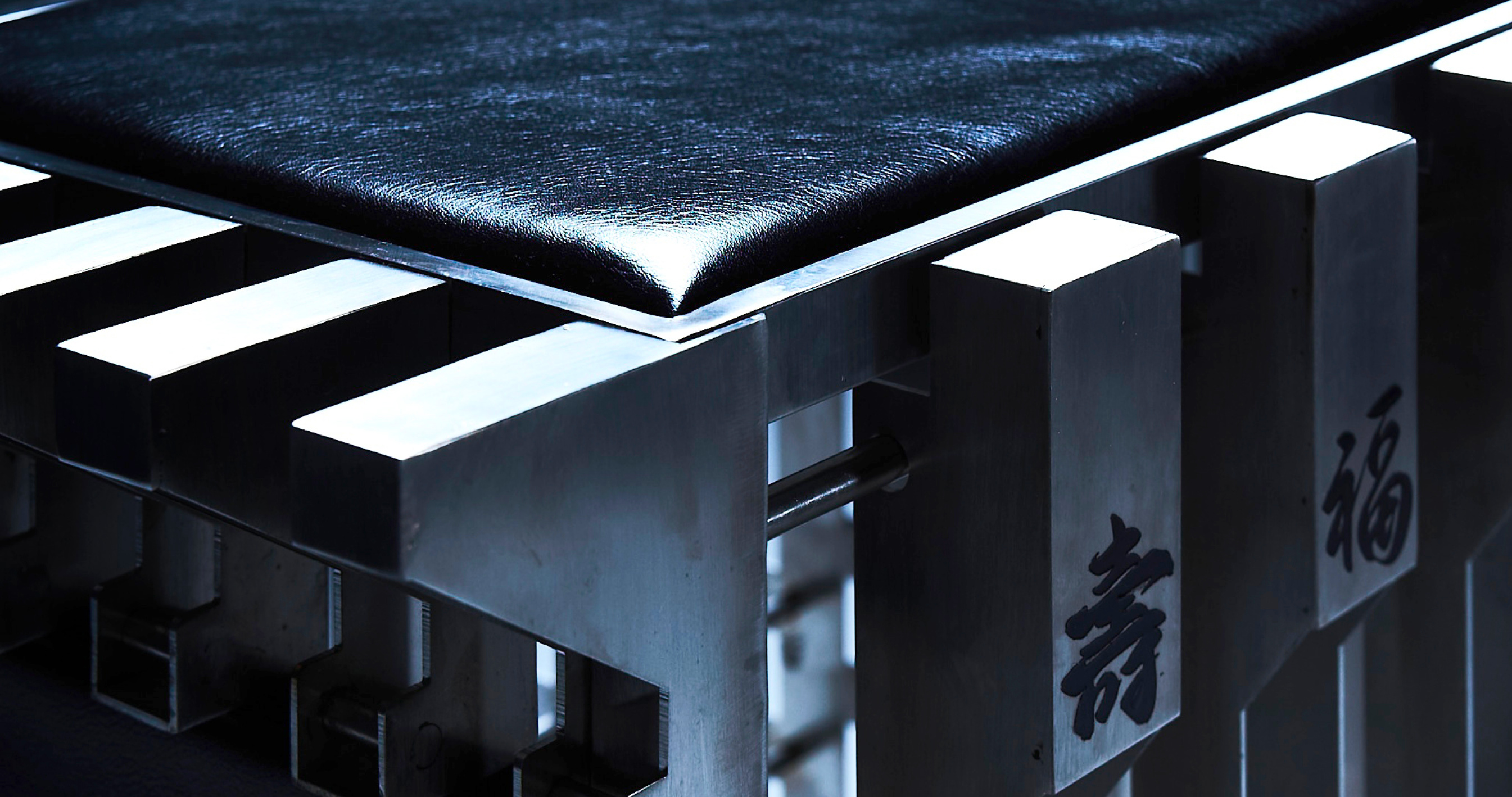 예: 두 소재 모두 제 작업에서 중요한 상징적 의미가 있는데요, 건축사 측면에서 볼 때, 철, 콘크리트, 유리 같은 새로운 재료들이 모더니즘 건축을 탄생시켰습니다. 이 새로운 재료들은 그 당시 불가능했던 구조들을 가능하게 하며, 장식적 요소를 최소화하면서 기능에 집중할 수 있는 중요한 전환점을 만들어줬죠. 다시 말해 재료가 곧 게임 체인저였던 셈입니다. 스테인리스는 저에게 이런 상징이면서 동시에 전통의 판을 바꿀 수 있는 도구라고 말하고 싶습니다. 또한 검정 가죽은 먹먹할 정도의 밀도를 만들어주는 역할로 스테인리스와 조합되어 인상적인 밀도를 만들어 냅니다. 앞으로도 이 조합을 저만의 조형 언어로 축적해 나가고자 합니다.
